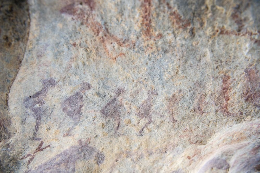 新疆阿勒泰市汗德尕特乡敦德布拉克洞穴彩绘岩画。新华社记者 胡虎虎 摄