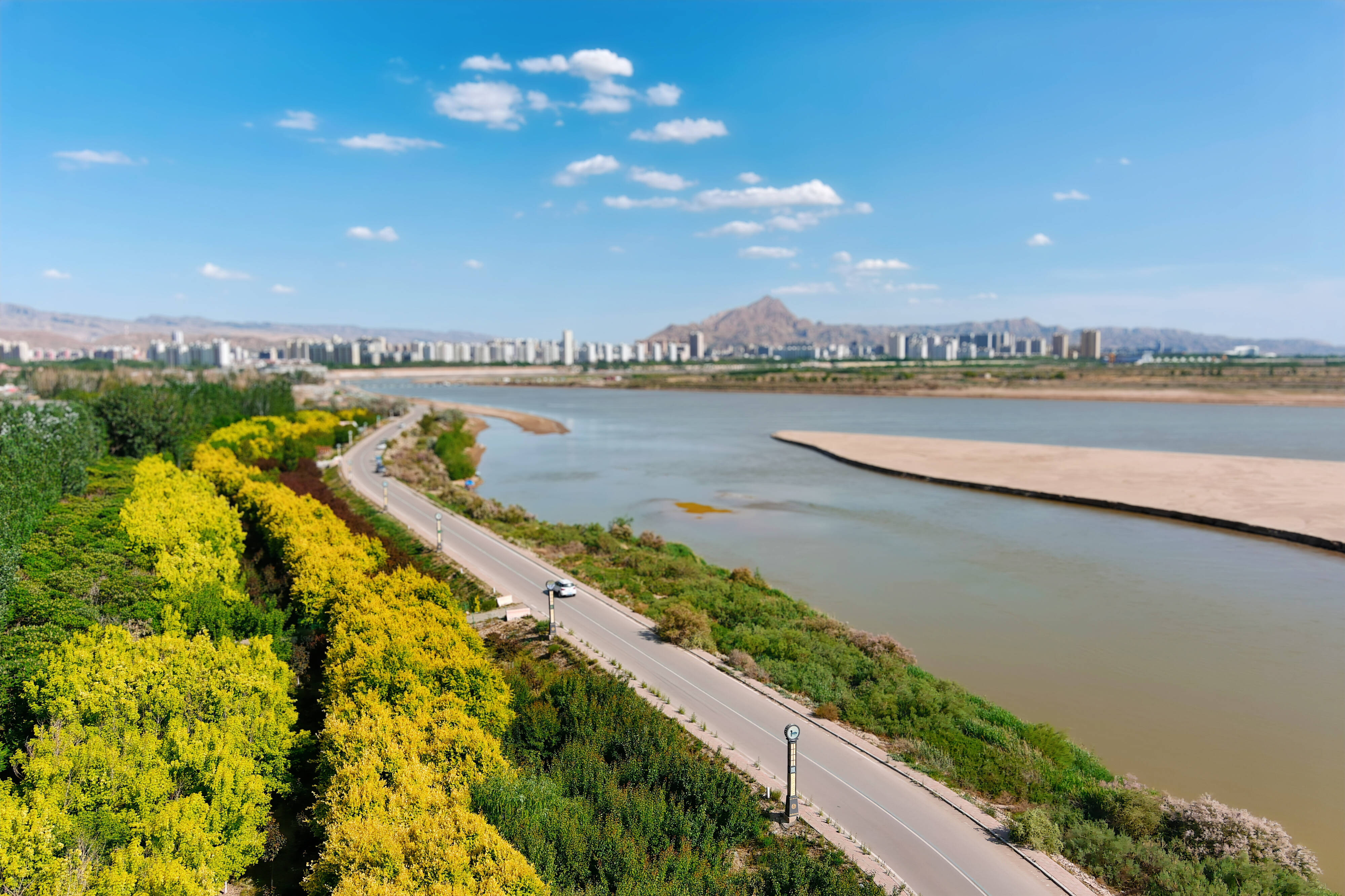 盛夏时节,黄河岸畔河柳青翠、绿意盎然,与滔滔流淌的黄河水交相辉映,勾勒出一幅美丽的画卷。