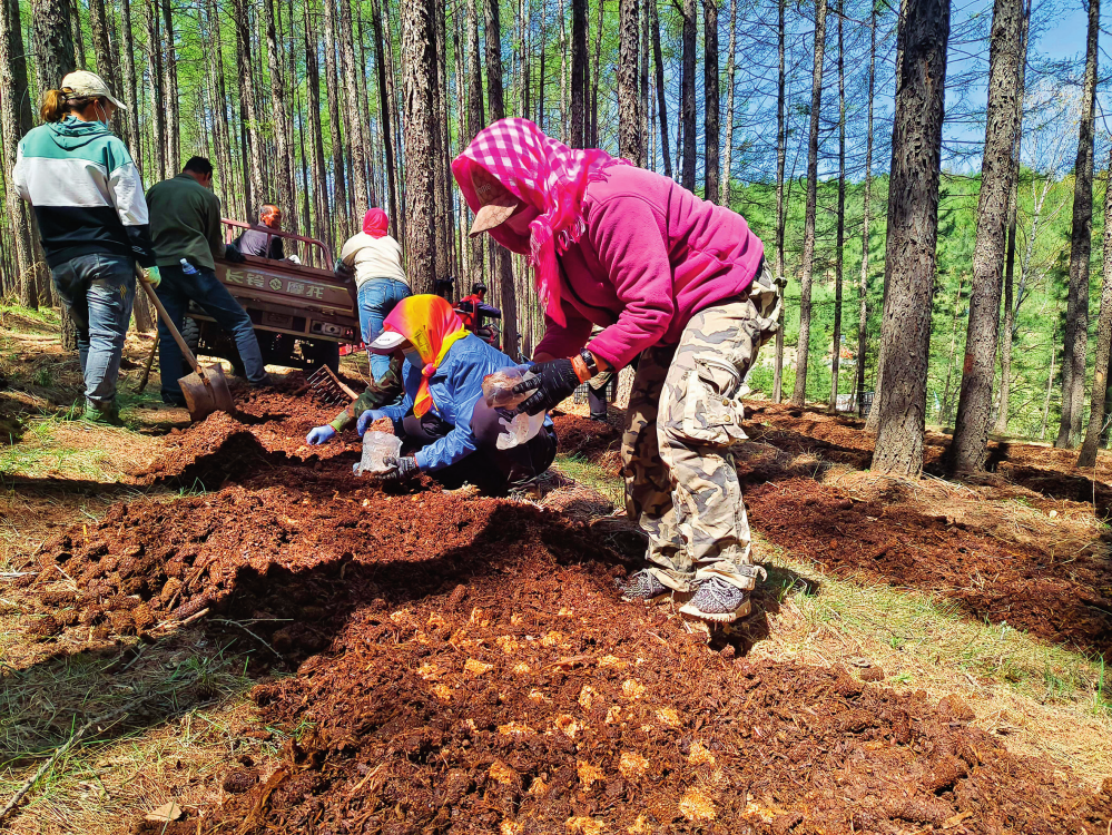内蒙古赤峰市喀喇沁旗工人在林下种植赤松茸(2024 年 5 月 10 日摄)赵建楠摄