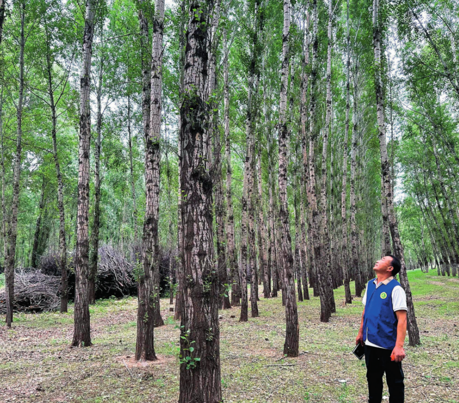 内蒙古兴安盟突泉县学田乡三合村的刘长春在巡护管护区树木(2024 年 6 月 10 日摄)宋健摄