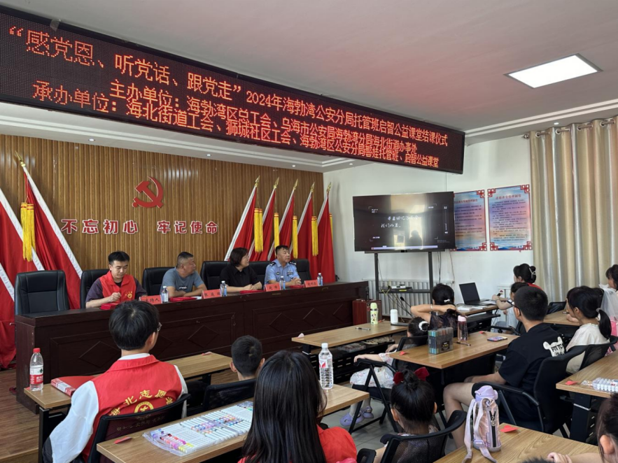 近日,“感党恩、听党话、跟党走”2024年海勃湾公安分局托管班启智公益课堂结课仪式在狮城社区举行。大学生志愿者、孩子和家长们齐聚一堂,共同回顾这段难忘的旅程,庆祝大家共同取得的成绩。
