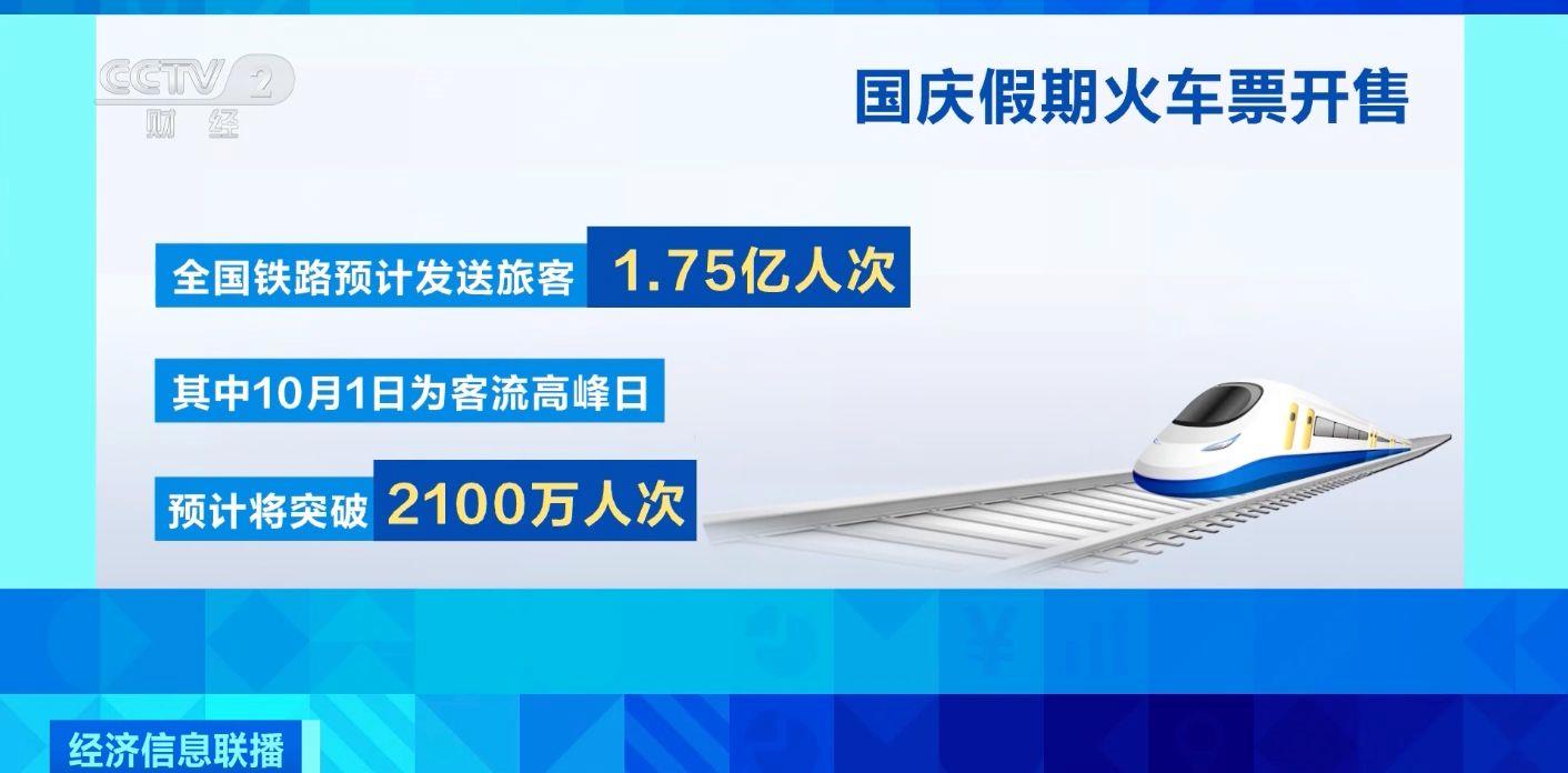 据了解,今年国庆黄金周铁路运输自9月29日开始至10月8日结束,为期10天。全国铁路预计发送旅客1.75亿人次,其中10月1日为客流高峰日,预计将突破2100万人次。