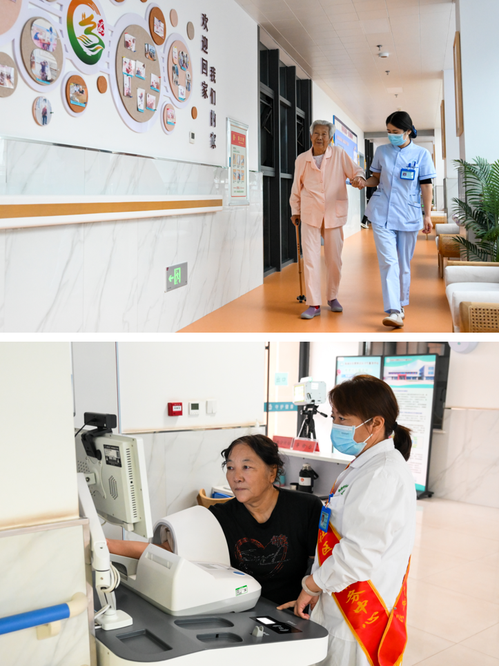 下图:2024年9月4日,一名居民(左)在海南区拉僧仲社区卫生服务中心测量血压。新华社记者 李志鹏 摄