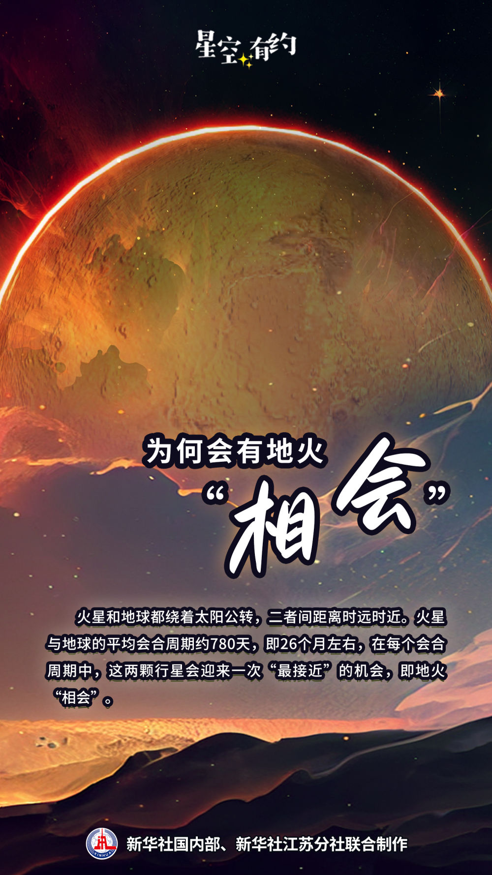 何为“最近”?中国科学院紫金山天文台科普主管王科超解释说,火星和地球都绕着太阳公转,二者间距离时远时近。火星与地球的平均会合周期约780天,即26个月左右,在每个会合周期中,这两颗行星会迎来一次“最接近”。