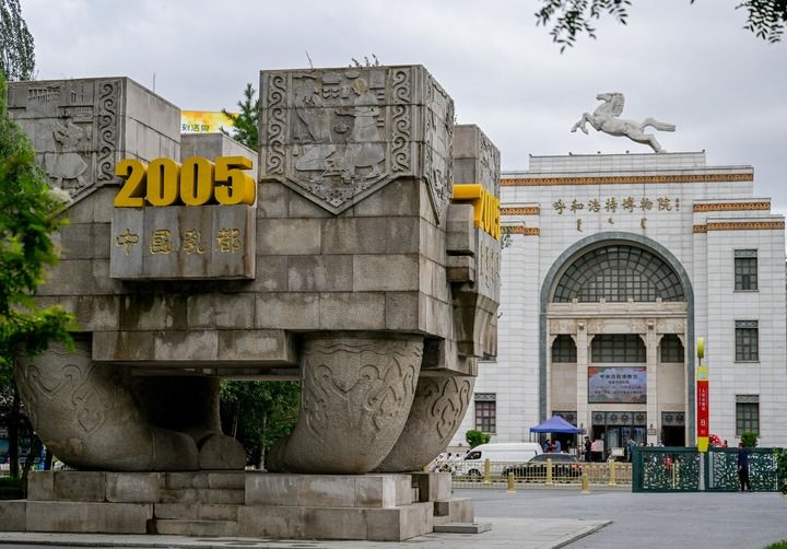 这是2024年8月11日拍摄的中国乳都雕塑和呼和浩特博物院。新华社记者 连振 摄