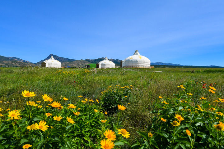 2024年6月30日,游客在敕勒川草原游玩。新华社记者 贝赫 摄