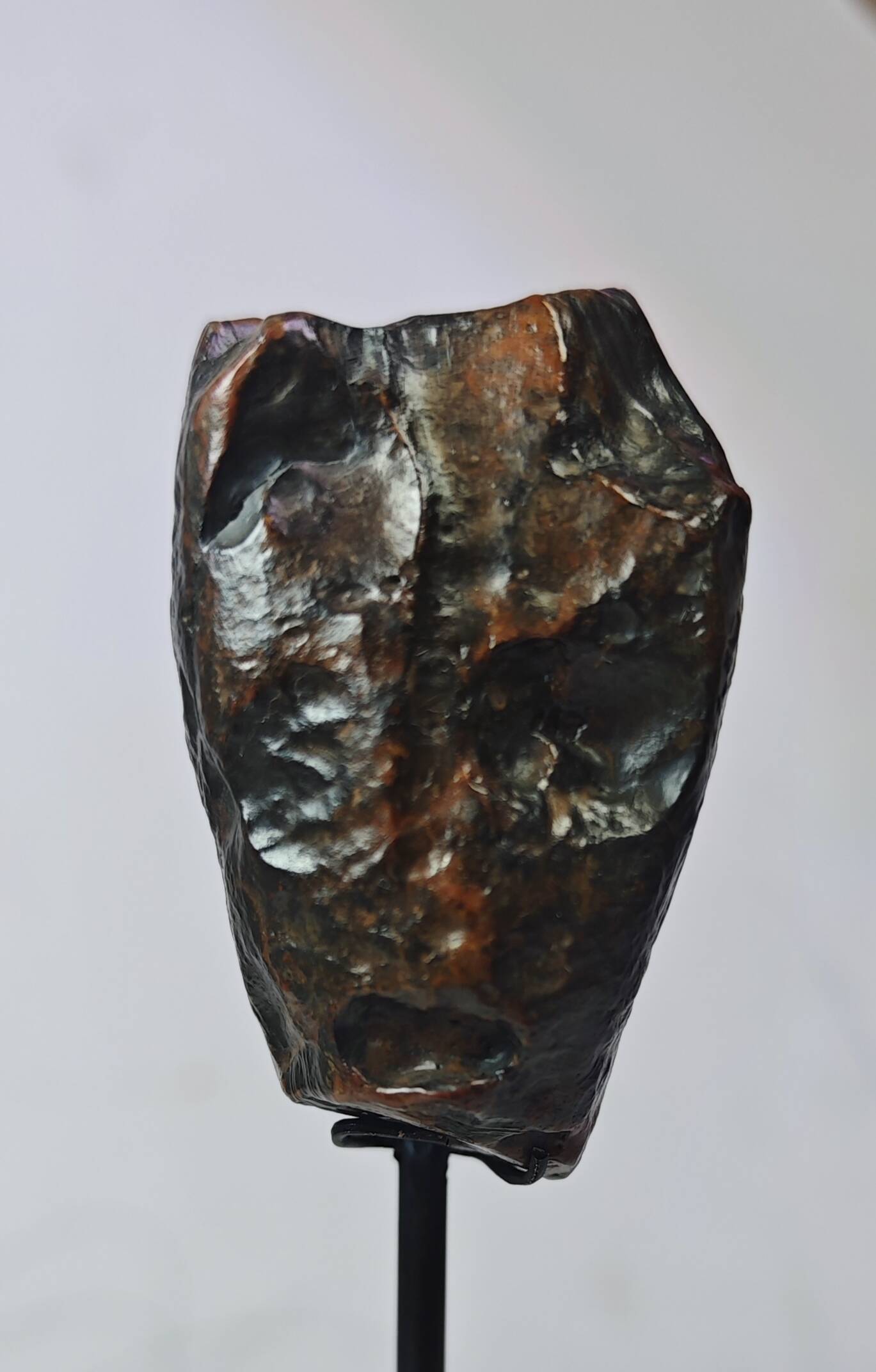 这些年的收藏经历,让王泽雨的藏石宝库日益丰富。他收藏的石头各具特色,令人称奇。其中有一块沙漠漆,形状神似传说中的麒麟,昂首挺胸的姿态,好像要腾飞而起,周身的纹理就跟麒麟身上的鳞片一样,栩栩如生;还有一块阿拉善戈壁石,乍一看像灵璧石,但石质坚硬,线条流畅,敲击时还能发出清脆悦耳的声音;还有,他收藏的一块含锰铁的坚硬石头,在不规则的形状中泛着金属光泽,让人眼前一亮。