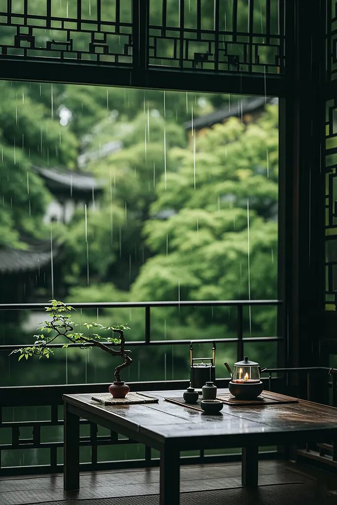 静坐品茶、侧耳听雨