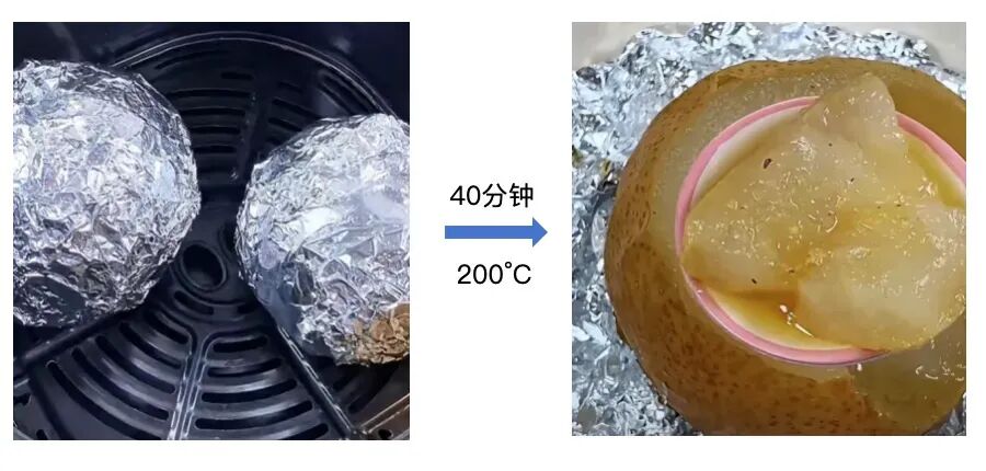 比如烤梨,将梨去核后用锡纸包裹,放入空气炸锅,加入适量的冰糖和水,烤制40分钟就能得到软糯香甜的烤梨。此外,空气炸锅还可以用来熬糖,制作糖葫芦等。