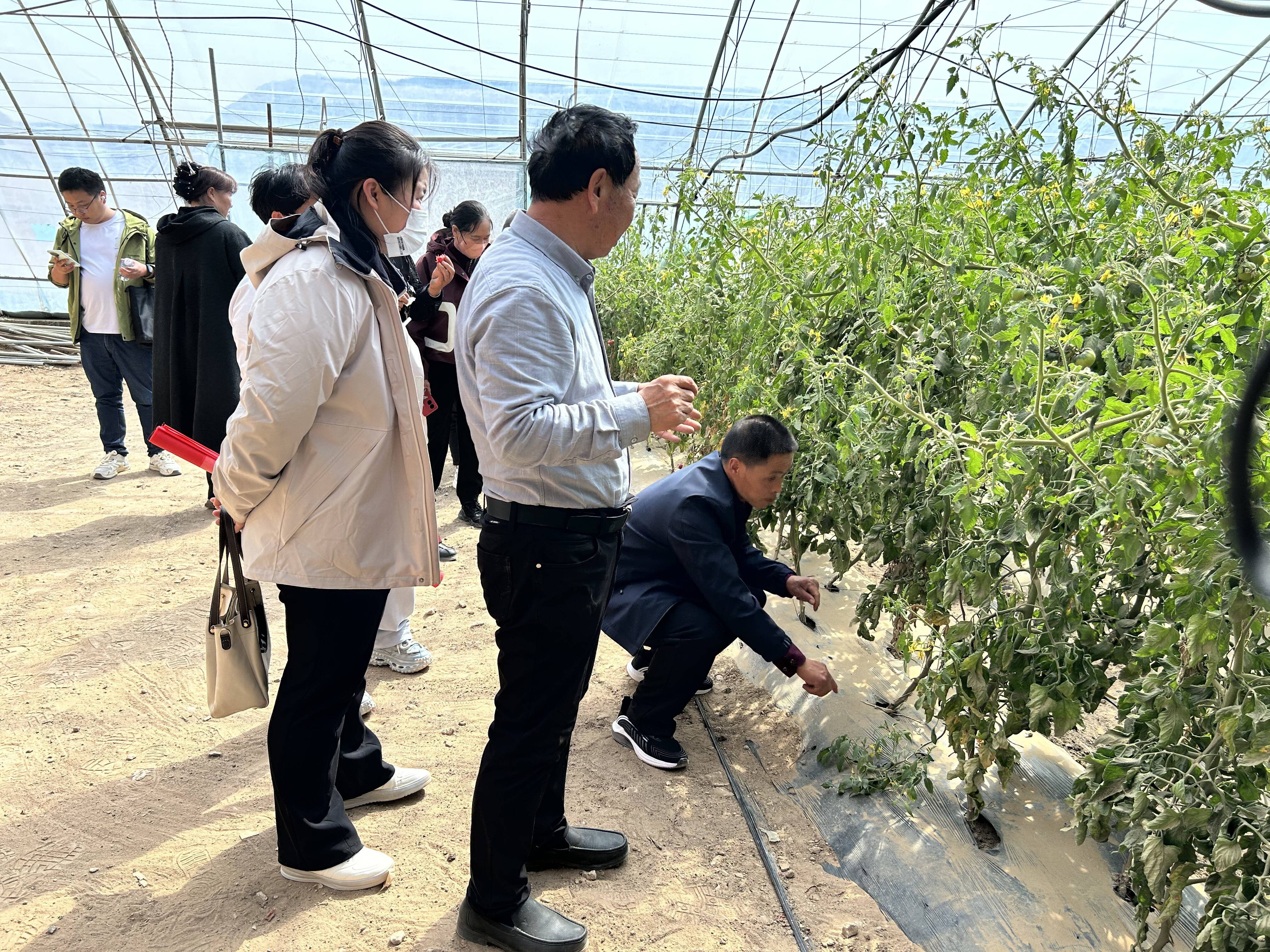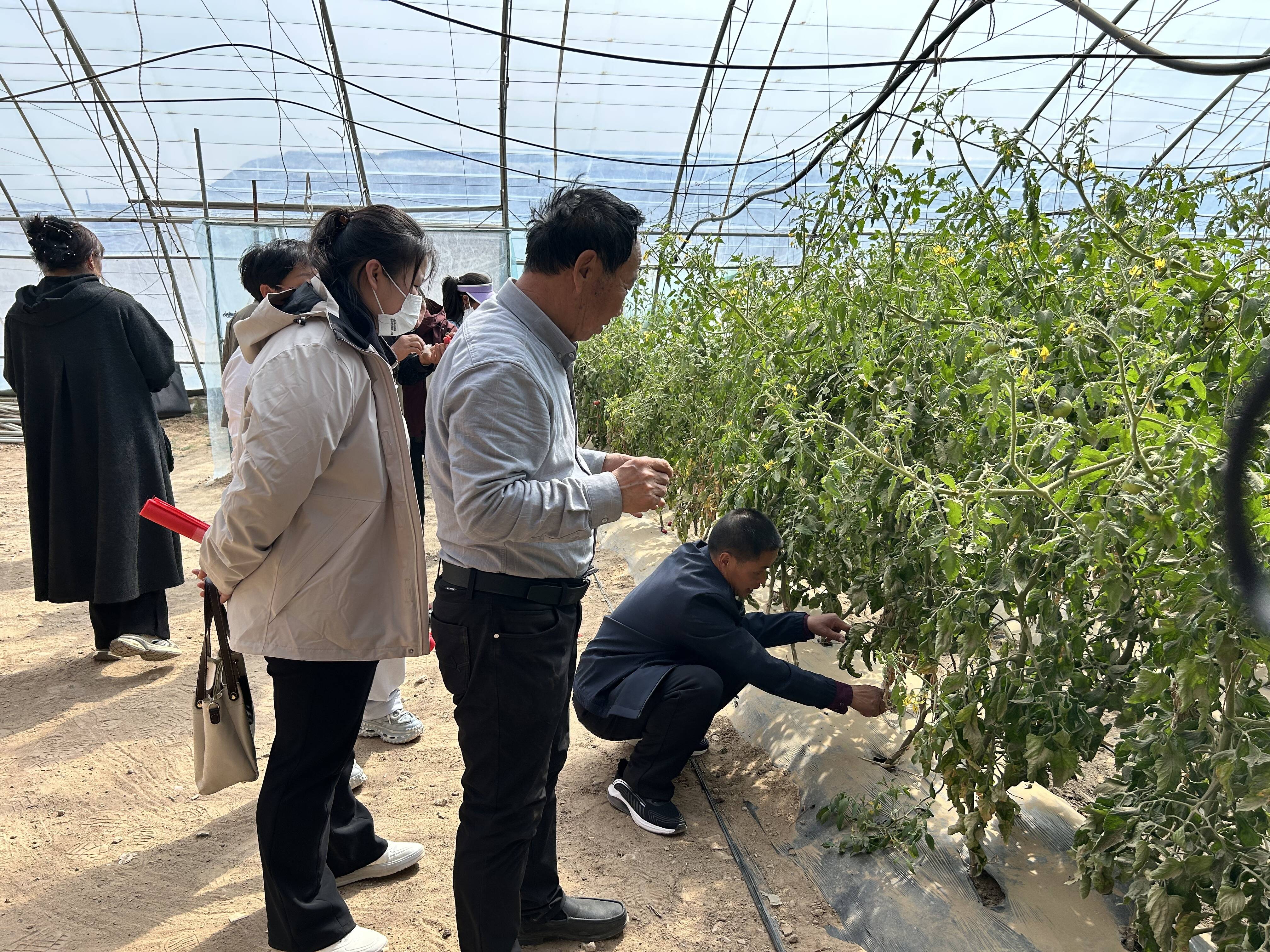 4月18日,来自包头的农业专家尚春明来到乌海市新义丰农业科技发展有限公司准备给种植户周彬家的番茄“看病”。
