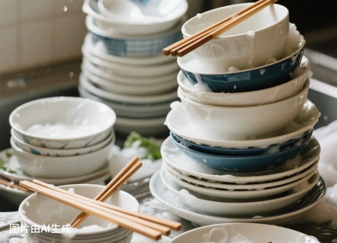 很多人习惯将用过的碗筷直接堆叠在一起,等一段时间后再清洗。