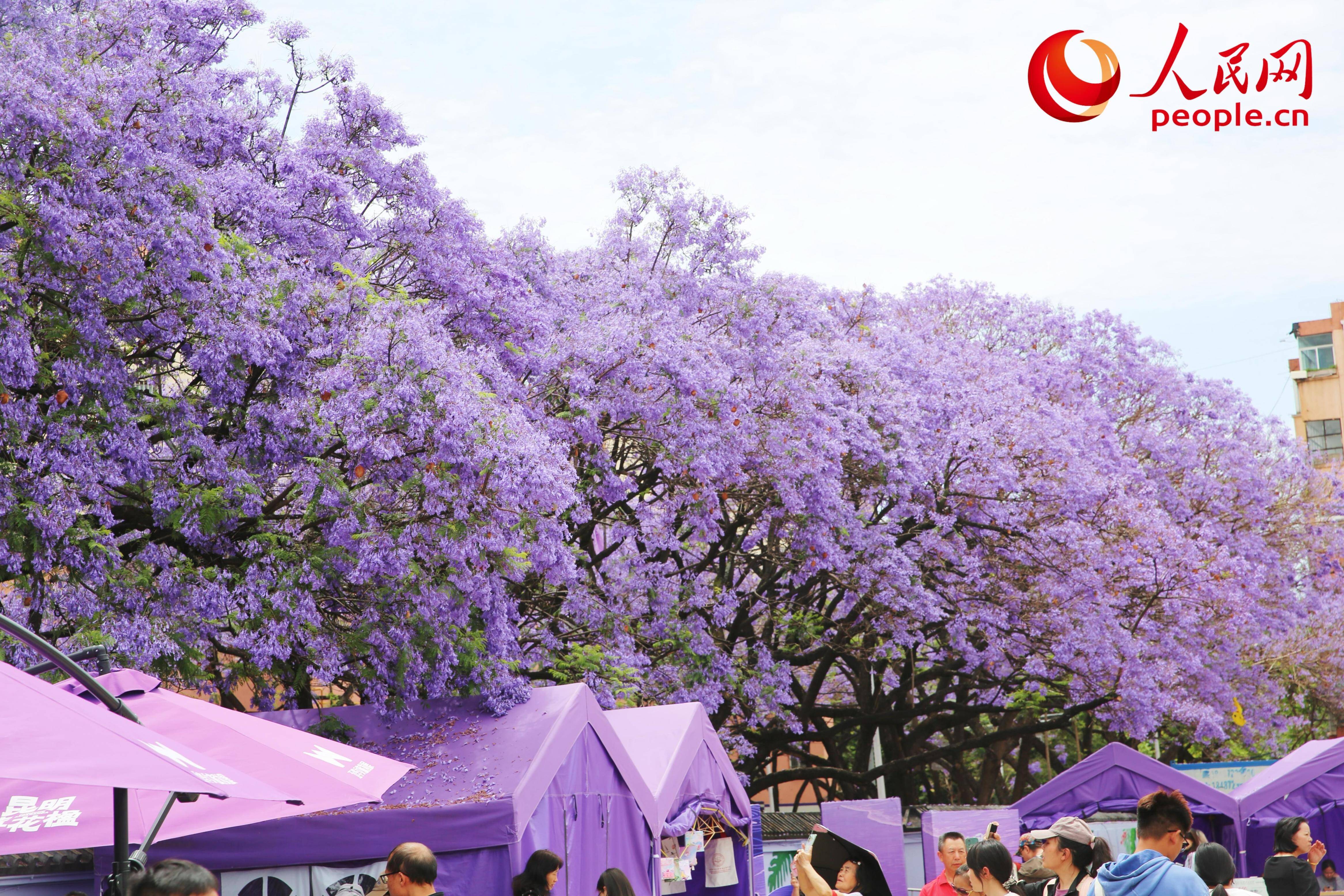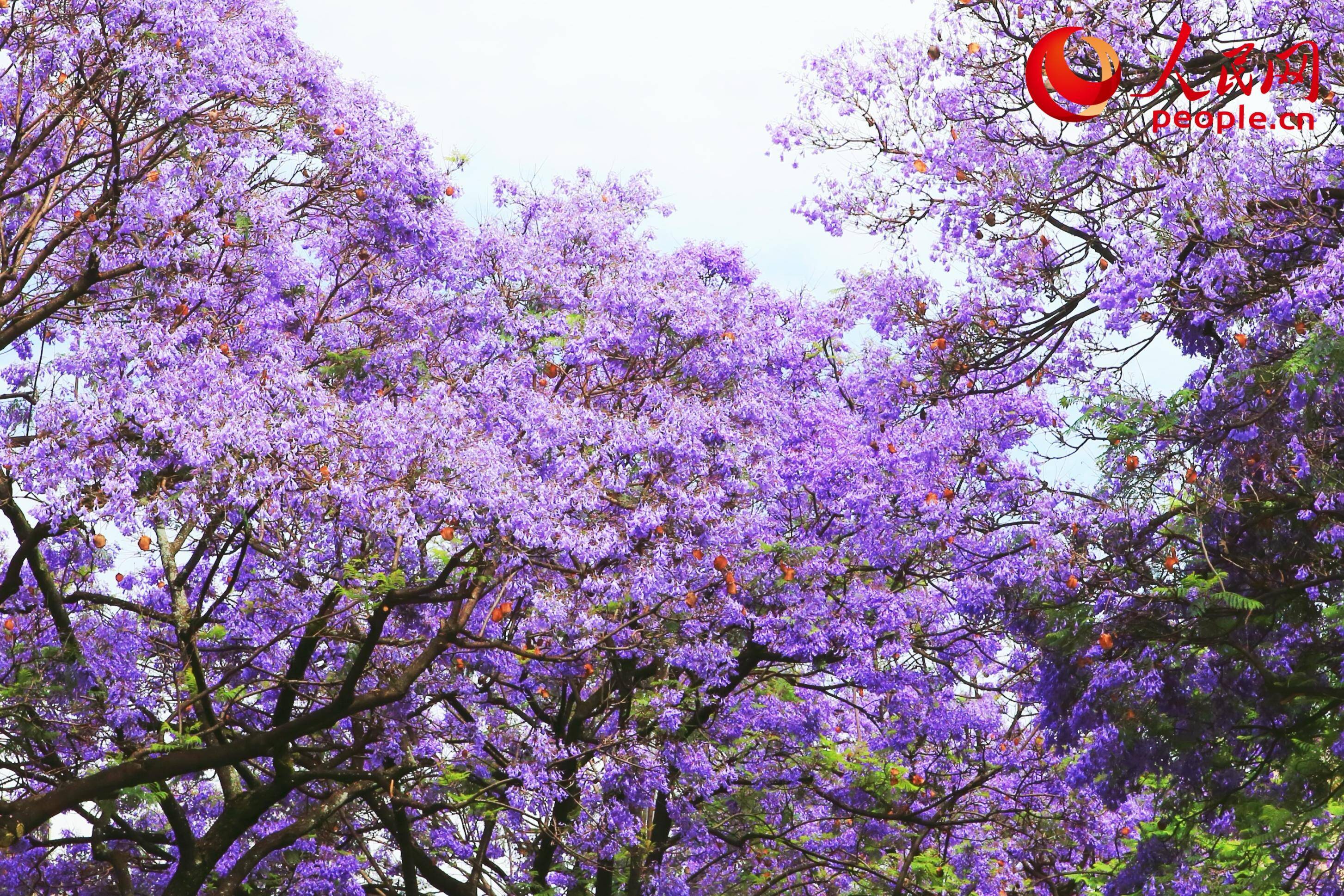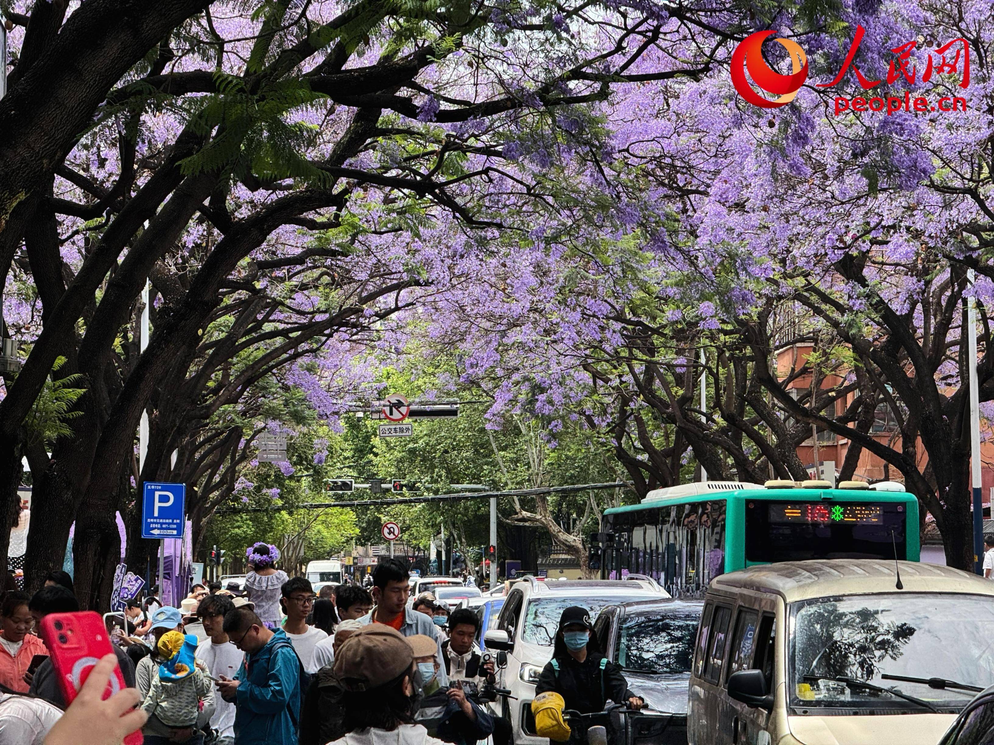 五月的昆明,温润和煦,紫色的蓝花楹正热烈绽放,点缀在大街小巷,尤其是在近两公里长的教场中路,满树繁花鲜艳耀眼,在阳光的映照下,更显别致夺目,如梦如幻,前来欣赏、拍照、打卡的游客络绎不绝,在花树下驻足流连,成为初夏一道亮丽的风景线。(刘微)