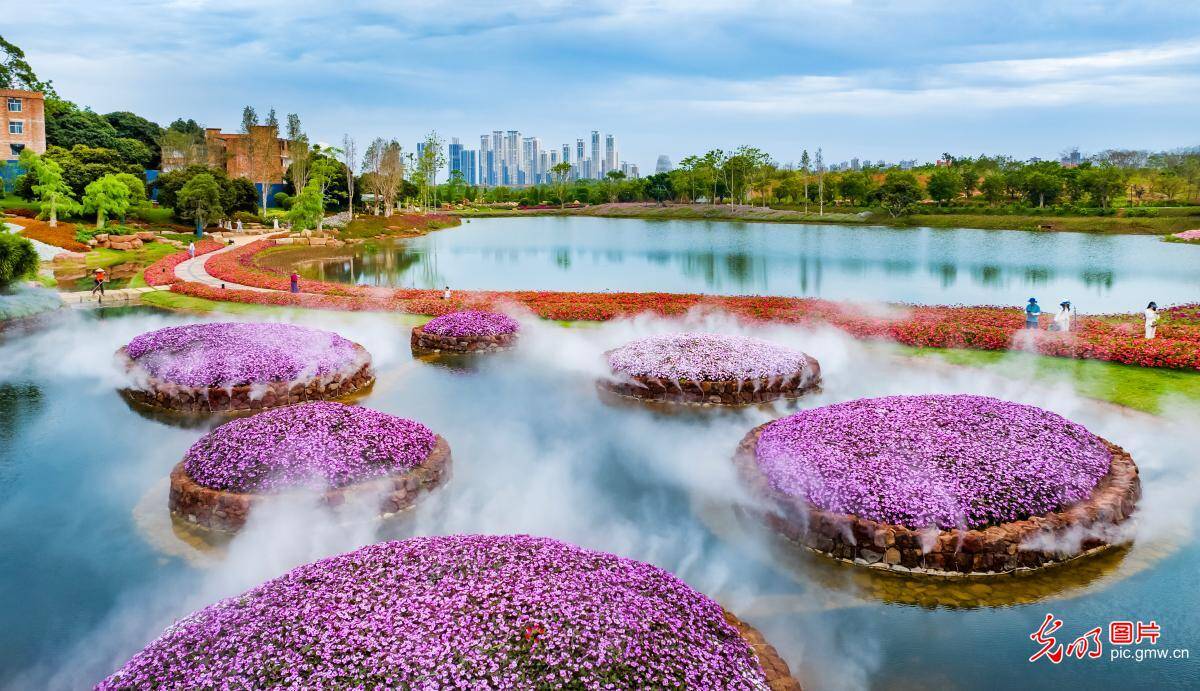 5月17日,广西南宁市青秀山风景区丘石花园里的格桑花、醉蝶花、海棠花陆续绽放,吸引了许多游客前来游玩观赏,乐享美好时光。(曾祥忠)