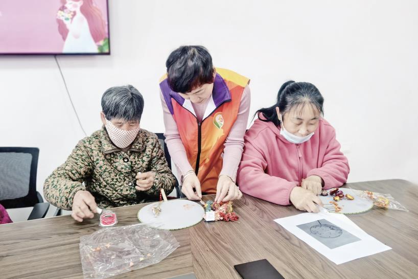 近日,海勃湾区滨河街道镇北社区开展了“妙手生花 扇绘芳华”干花团扇制作活动。居民们在志愿者的指导下,制作出一幅幅美丽的干花团扇作品。