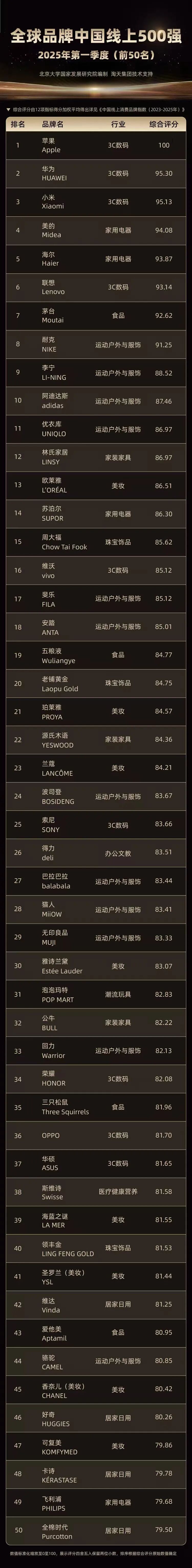 5月21日,由北京大学国家发展研究院、北京大学数字金融研究中心、中山大学商学院合作推出,阿里巴巴淘天集团提供技术支持的“中国线上消费品牌指数”(CBI) 、“全球品牌中国线上500强榜单〞(CBI500)和“线上品牌购买力指数”(BPI)发布。