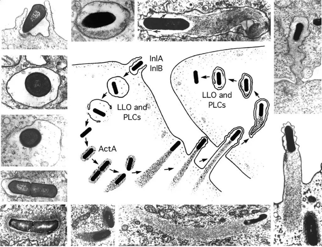 感染之后,它们可以在宿主细胞内生长繁殖,并扩散至邻近细胞,可以在体内存活很长时间。躲在细胞内的李斯特菌能够逃过人体的免疫防御机制,然后进入并感染不同的器官。