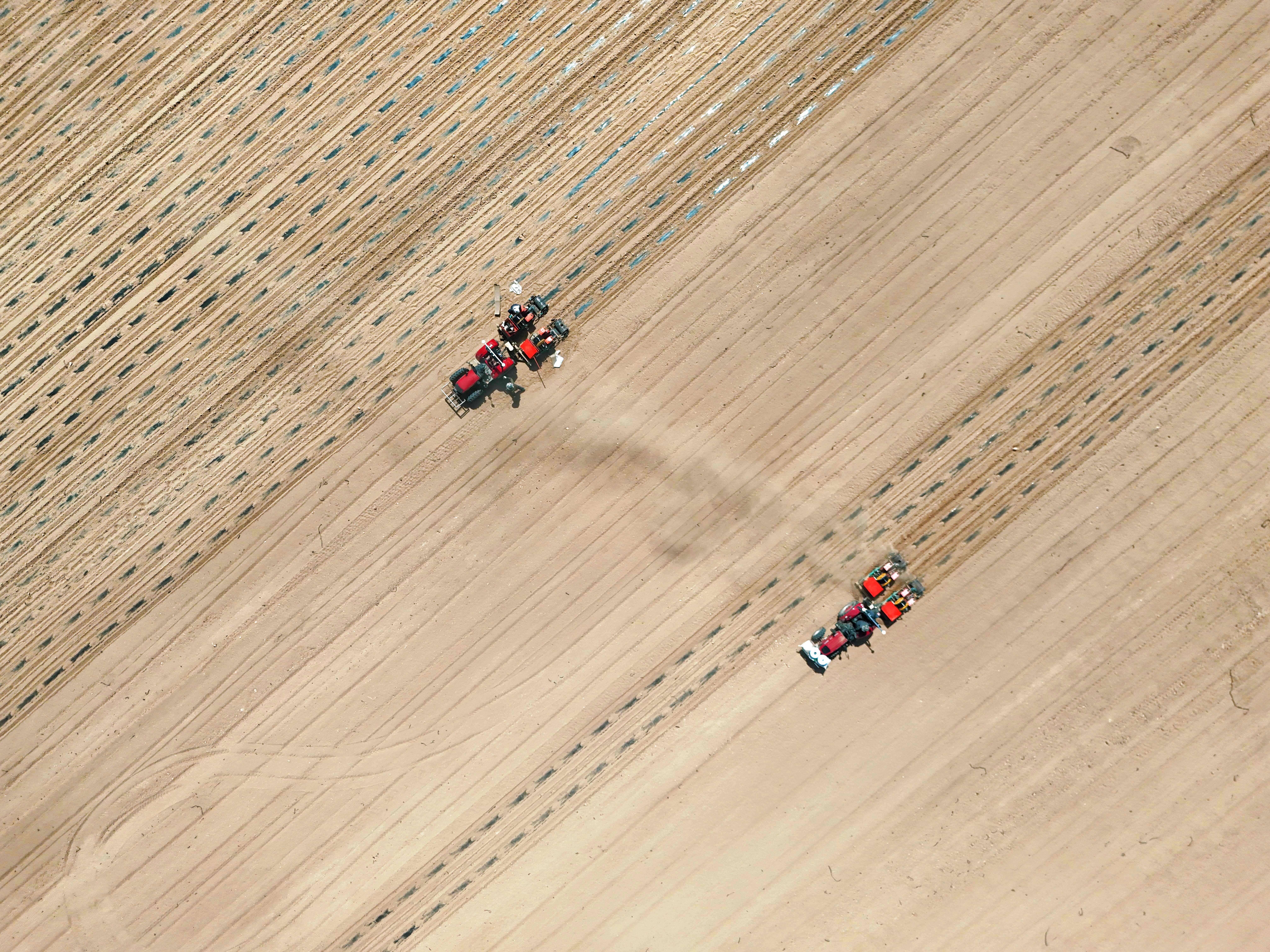 “3台机器全天候作业,一天就是200多亩,还有一周时间就能完成2000亩的播种任务。”李文亮说。相较于往年人工播种日均不足20亩的效率,如今单台机器日作业量可达70亩,配合地膜覆盖技术,土壤增温效果显著。
