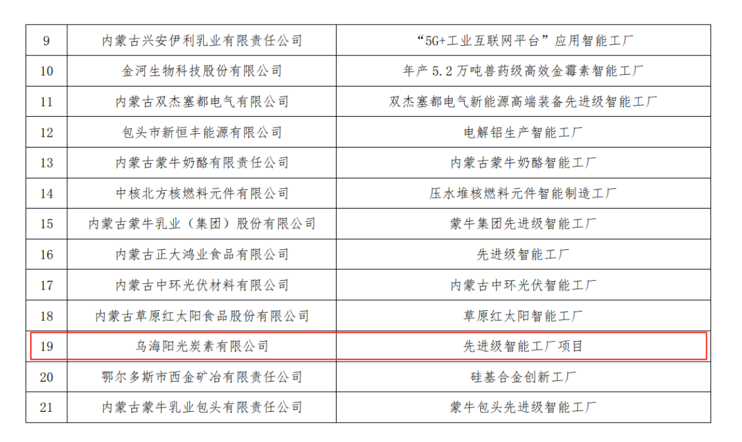 5月26日,自治区工业和信息化厅公示2025年内蒙古自治区先进级智能工厂拟认定名单,乌海市在智能工厂梯度培育工作中成绩亮眼,9家企业脱颖而出,入选企业数量位居全区第三,彰显出强大的工业智能化发展实力。