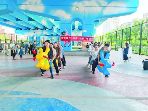 5月27日,海勃湾区海北街道东环路社区举办“浓情端午 健康‘捡粽’运动会”,将端午节与运动减重相结合,让居民们在快乐中享健康生活。