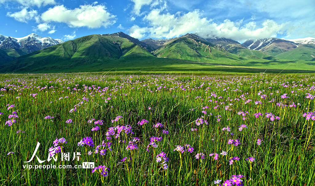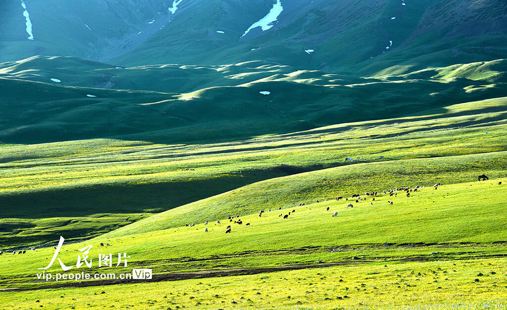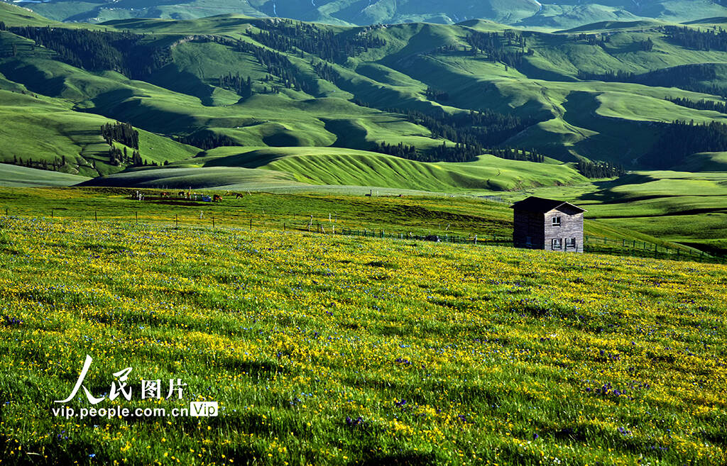 新疆伊犁哈萨克自治州伊宁县境内的托乎拉苏大草原夏季景色优美。(巴合达吾来提·巴吐别克)