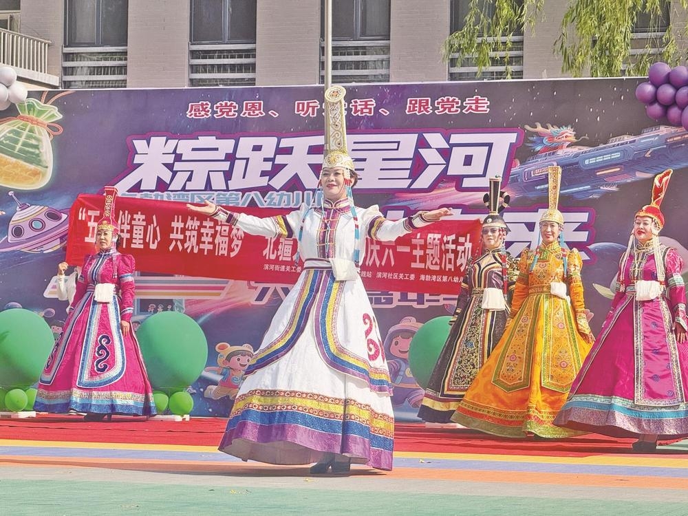 近日,海勃湾区第八幼儿园举办“粽跃星河 童创未来”主题活动。激昂的舞狮表演、神秘的川剧变脸、可爱的幼儿舞蹈、精致典雅的民族服饰走秀等节目依次上演,弘扬中华优秀传统文化的同时,丰富了幼儿校园生活。
