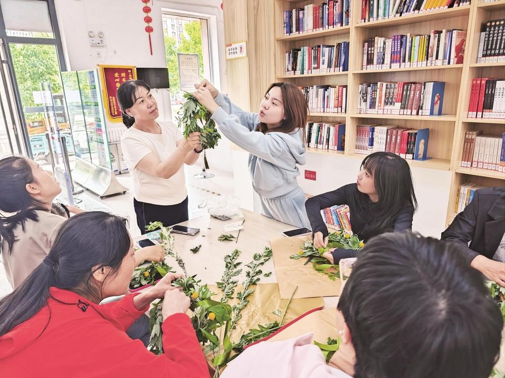 日前,市图书馆开展了“粽香书韵·艾草传情——当阅读遇见端午,手作共传民俗情”主题活动。活动中,图书馆工作人员向读者介绍了端午节的起源、历史脉络、节日习俗并指导制作艾草花环,让读者沉浸式感受端午节的深厚底蕴。