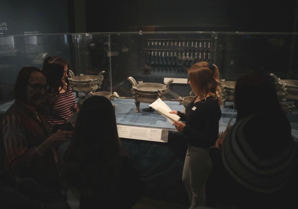 2024年4月,美国旧金山亚洲艺术博物馆“凤凰故国:青铜时代曾楚艺术展”现场,一群美国学生在不同展柜前仔细记录、轻声交谈。