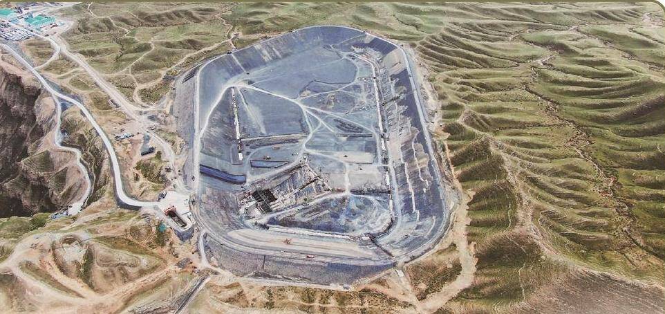 乘车继续向上水库驶去,直至行驶到甘德尔山骆驼峰东侧,映入眼帘的是一个椭圆形状的巨大库盆,那便是上水库。库盆内,卡车、挖掘机、混凝土泵车等工程机械正在紧张有序地进行作业。