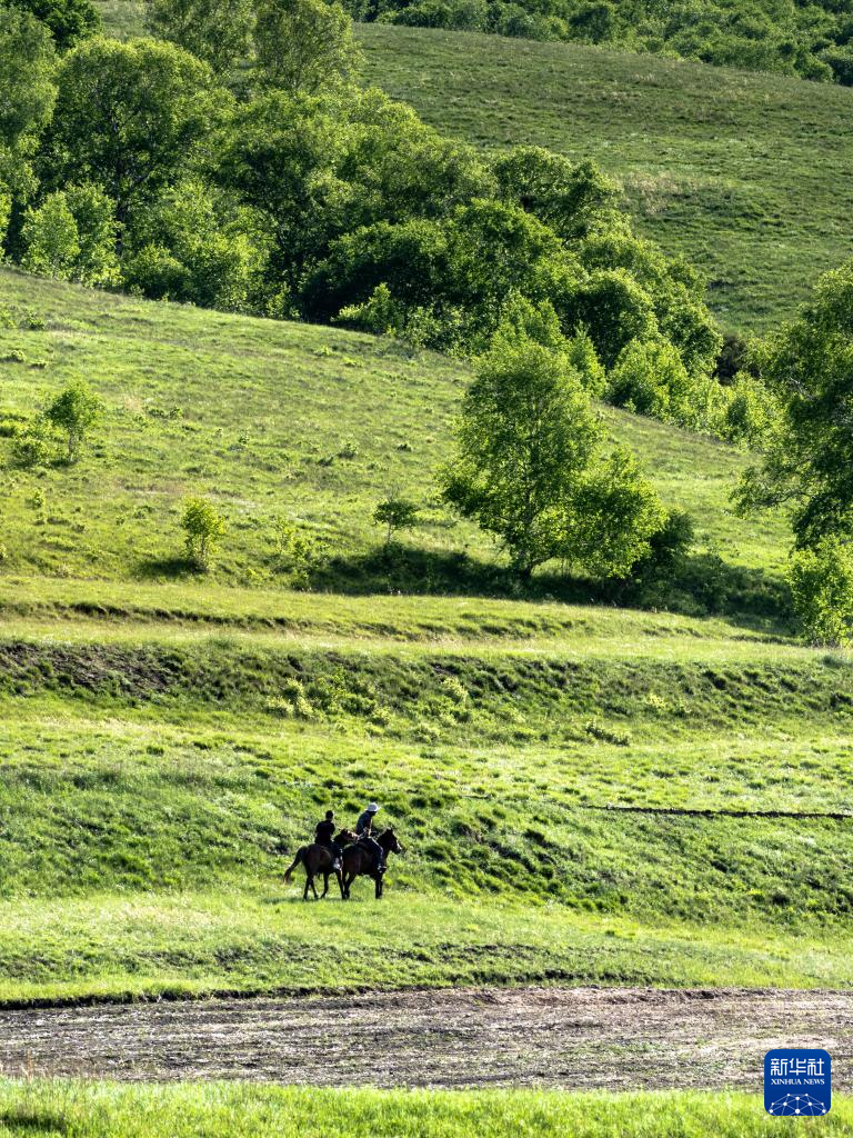 6月5日,游客在内蒙古大青山国家级自然保护区骑马。