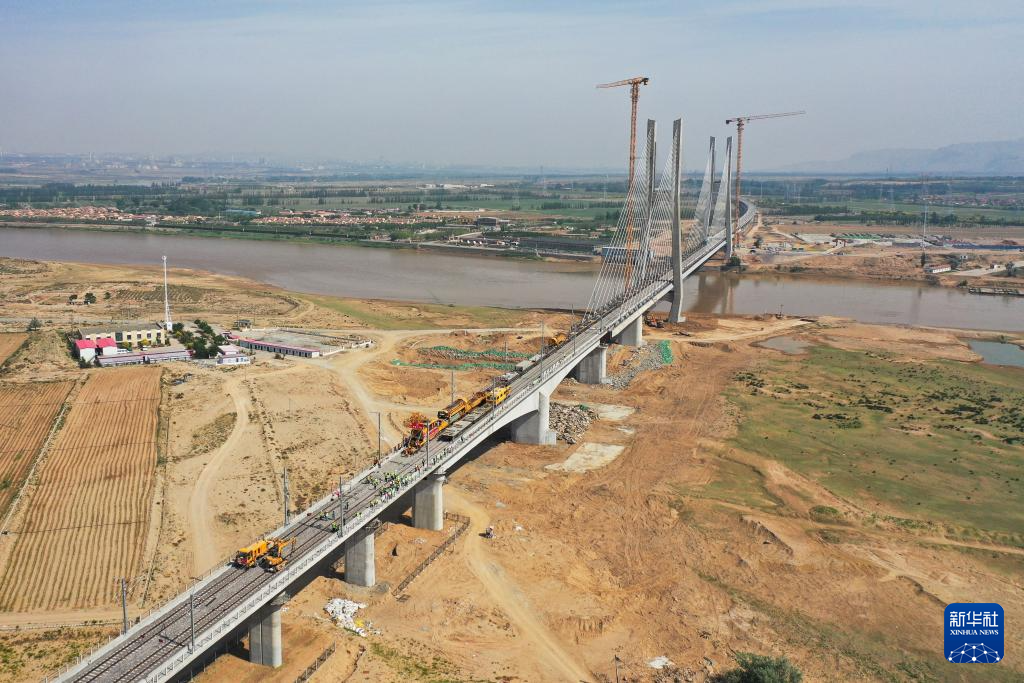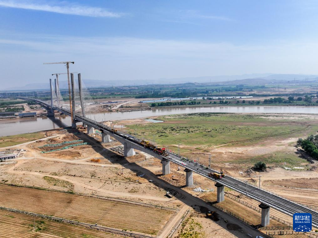 6月6日,在中铁二十局参建的包银高铁乌海黄河特大桥铺轨施工现场,随着最后一组500米长钢轨精准落位,包银高铁内蒙古段全线铺轨工程圆满完成。