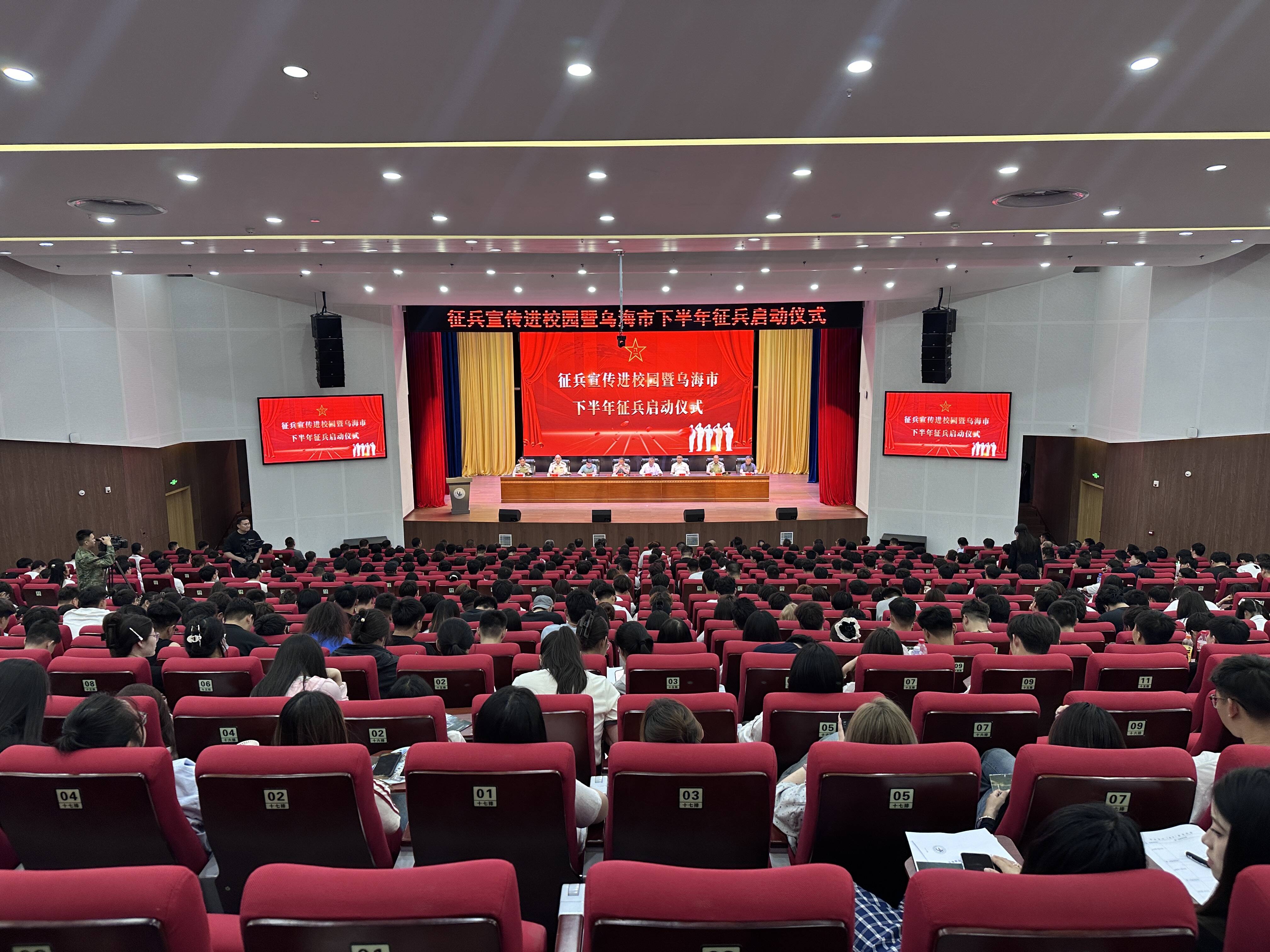 6月9日,2025年征兵宣传进校园暨乌海市下半年征兵启动仪式在乌海职业技术学院报告厅举行。市委常委、乌海军分区政治委员饶崇书出席。军分区、市区两级征兵办、各区人武部工作人员,以及学院师生约700人参加。