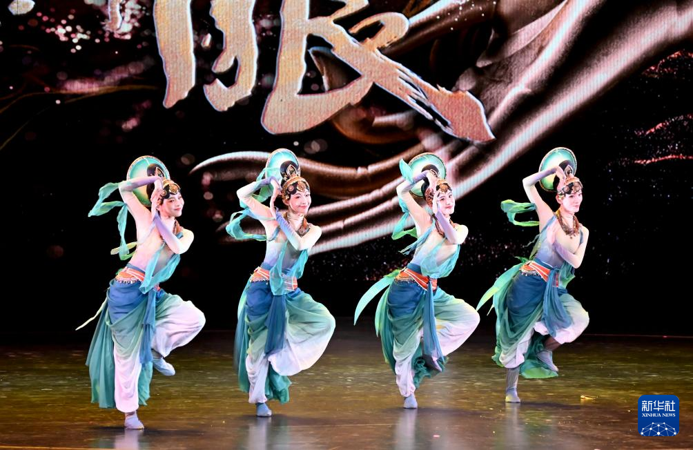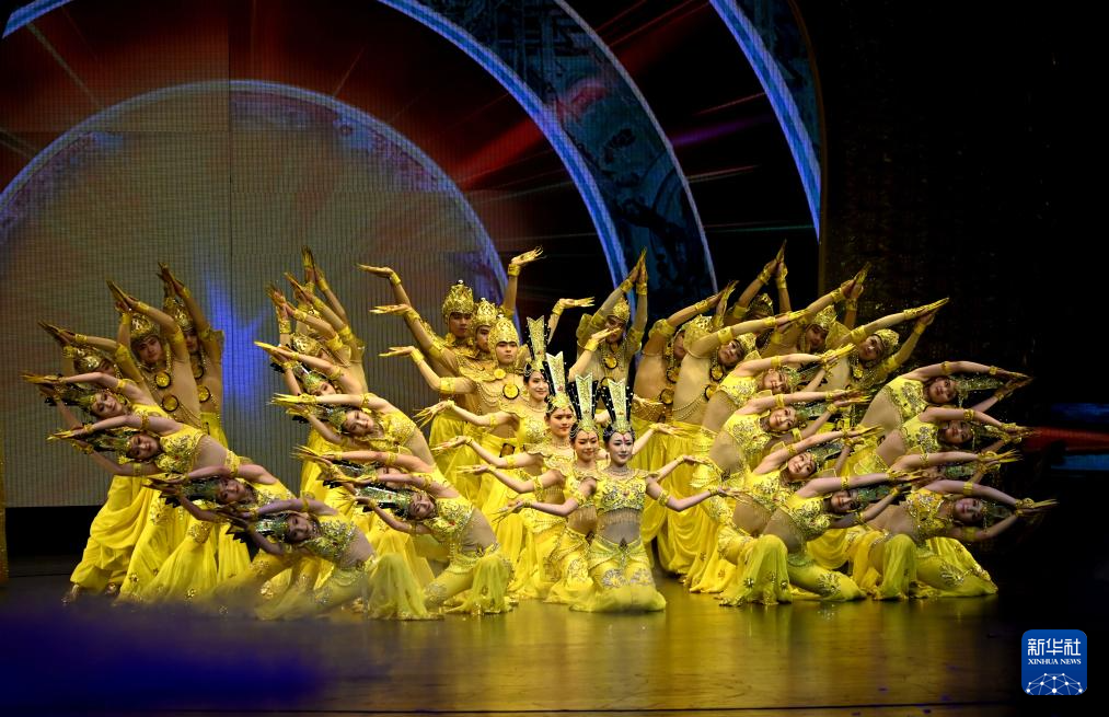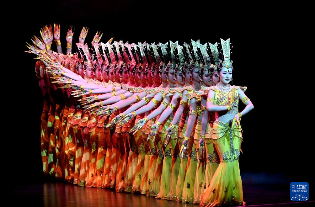 近日,创排升级、全面提升观演效果的大型情景音画剧《千手千眼》开启今年在甘肃敦煌驻场的首场演出。该剧以中国残疾人艺术团音乐舞蹈诗《我的梦》为蓝本,依托莫高窟第3窟等敦煌壁画元素创编而成,通过音乐、舞蹈、多媒体等形式讲述了“妙善救父”的民间故事。(张晓亮)