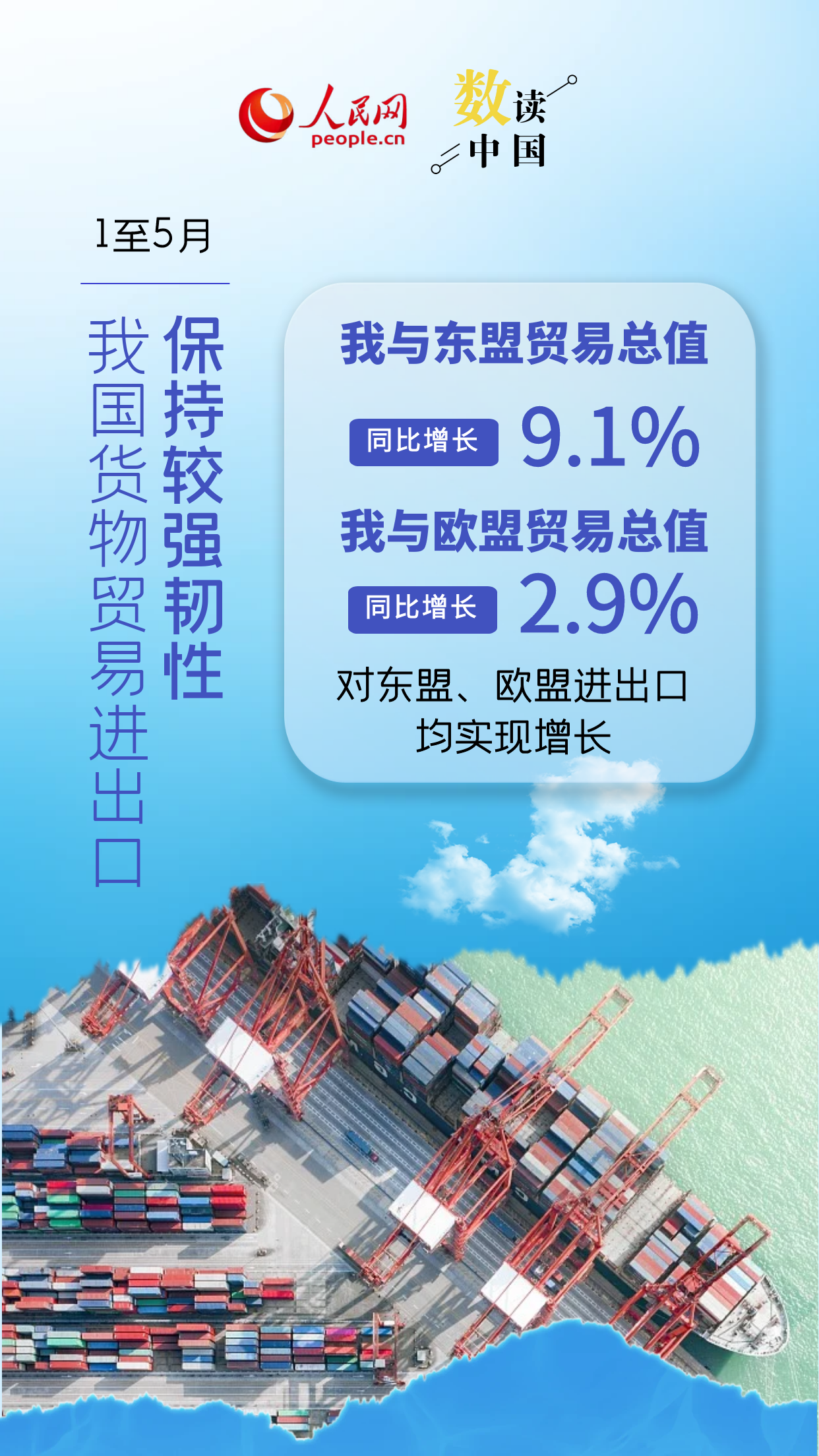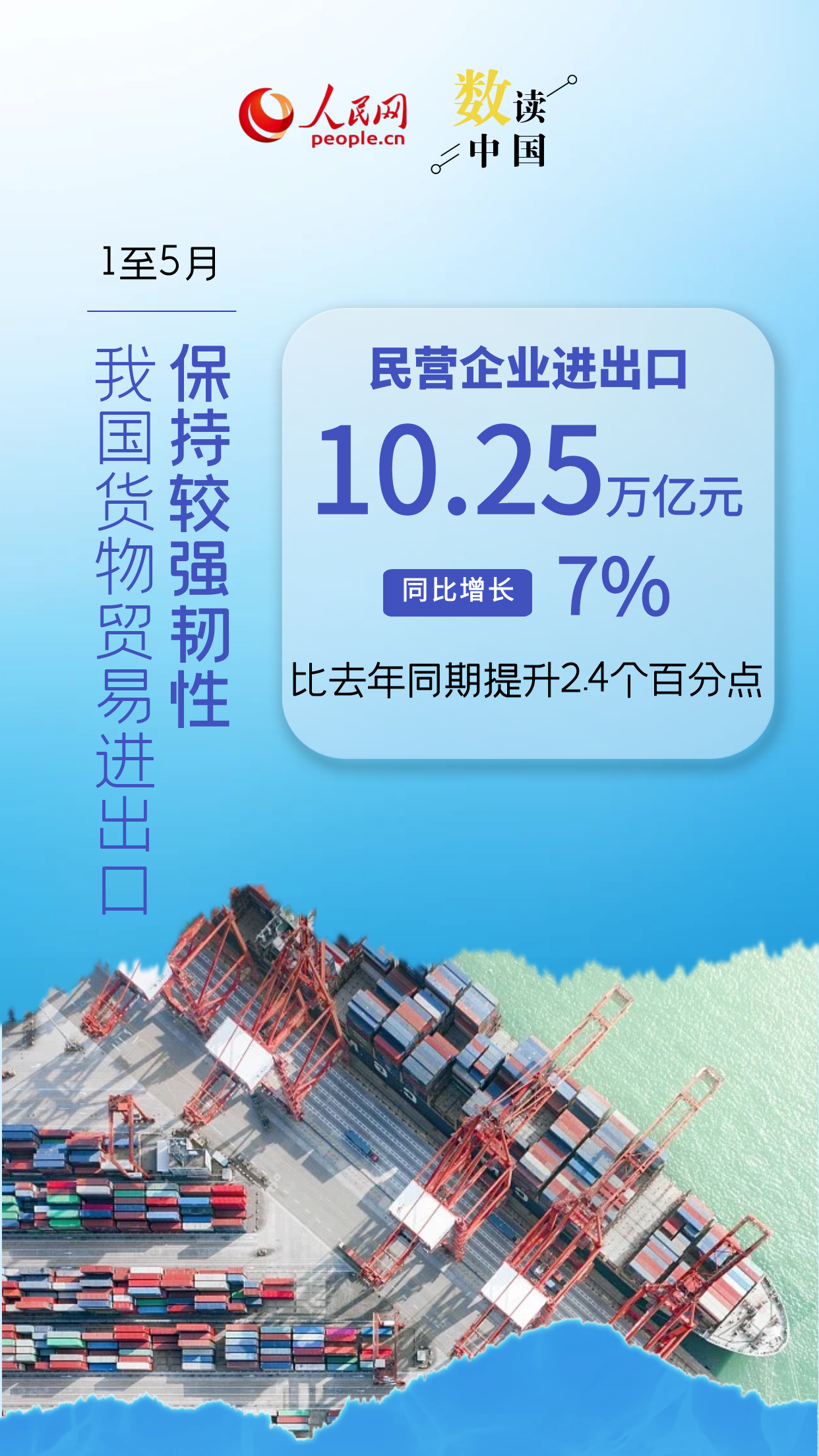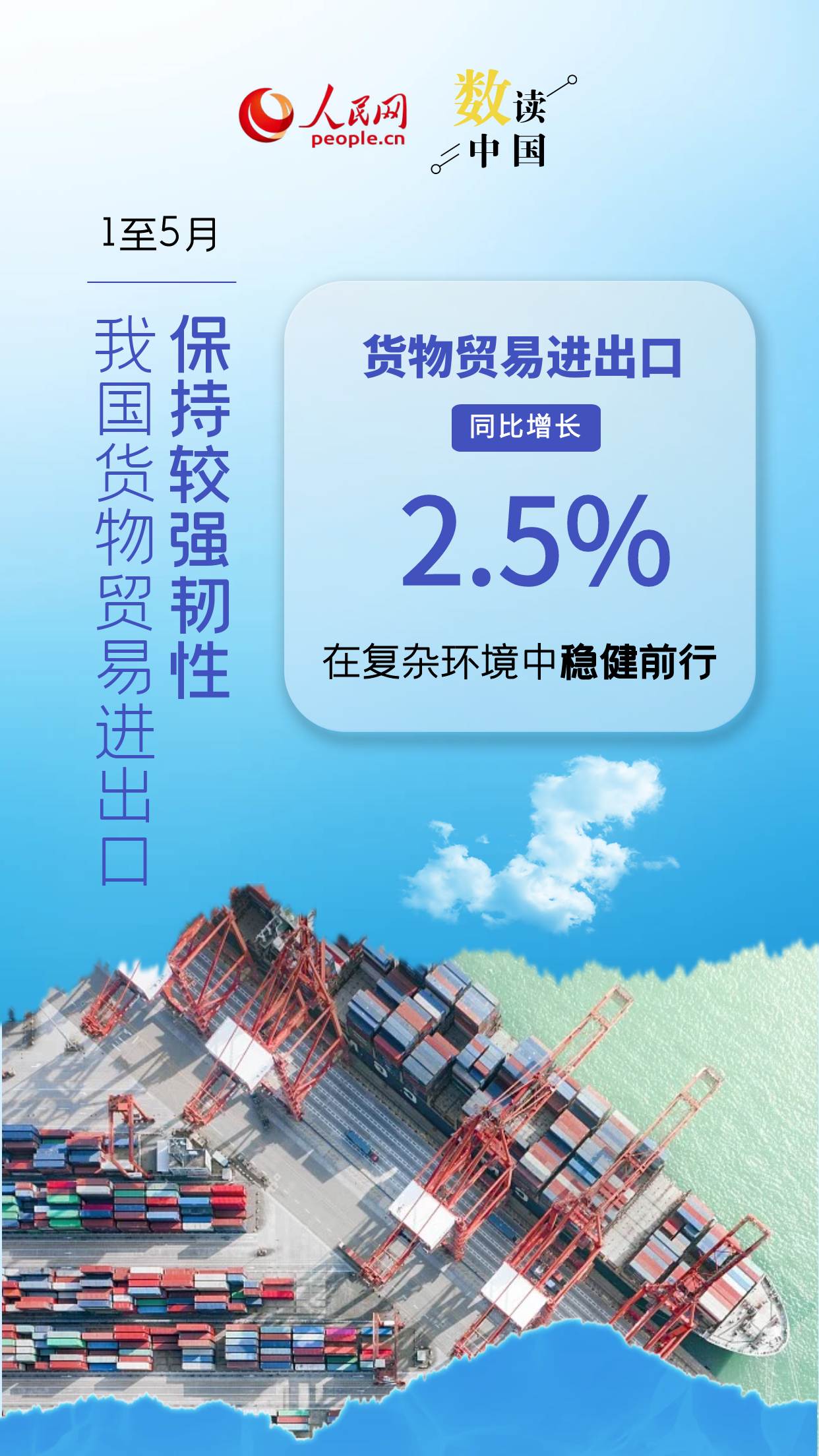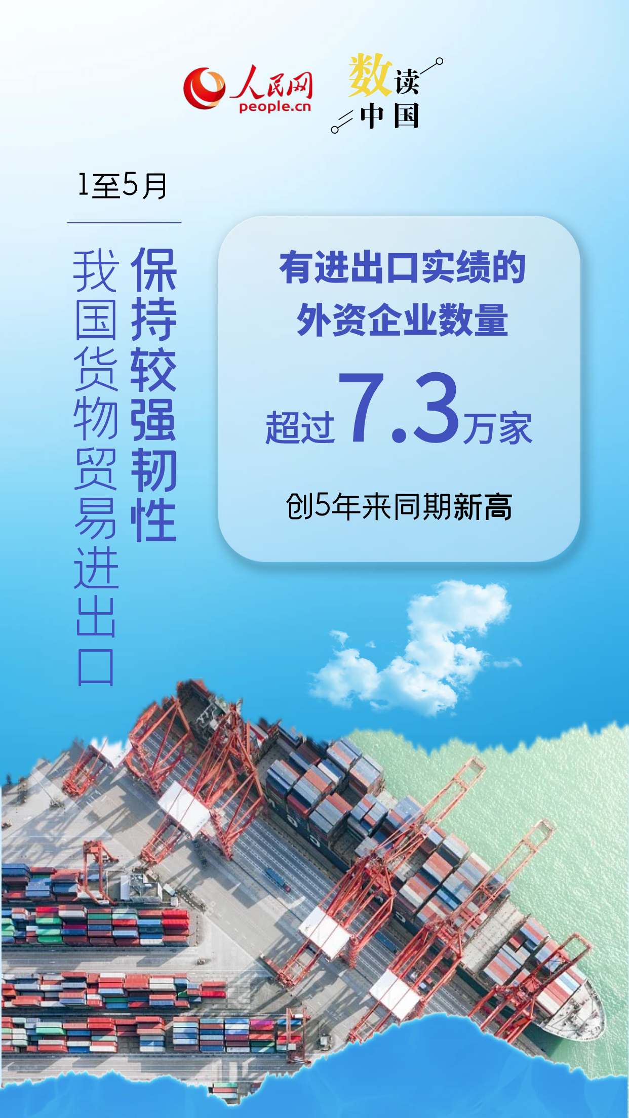 2025年前5个月,我国货物贸易进出口总值达17.94万亿元人民币,同比增长2.5%。其中,有进出口实绩的外企数量创5年来同期新高,民营企业进出口增速提升,中非贸易规模创历史新高,装备制造业、机电产品出口增势良好……总体来看,前5月我国外贸保持较强韧性。