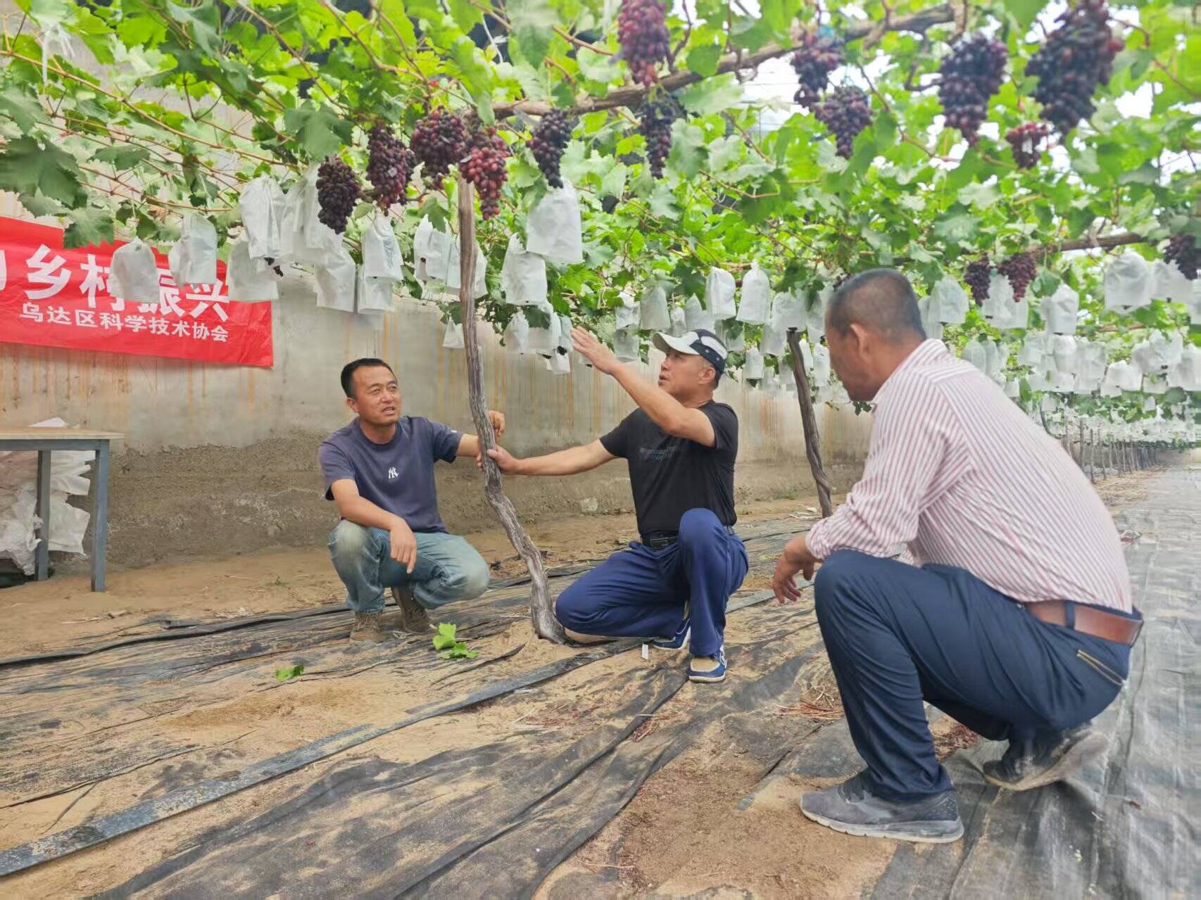 “李教授,我家葡萄叶子又出现黄斑了!”“老郭,你上次教的剪枝方法真管用!”近日,在海勃湾区中河源社区,市科协的“科技助农直通车”刚停稳,内蒙古农业大学教授李正男和“田秀才”郭永胜就被农户们团团围住。车身上“科技为民 服务三农”的红色标语,在晨光中格外醒目。