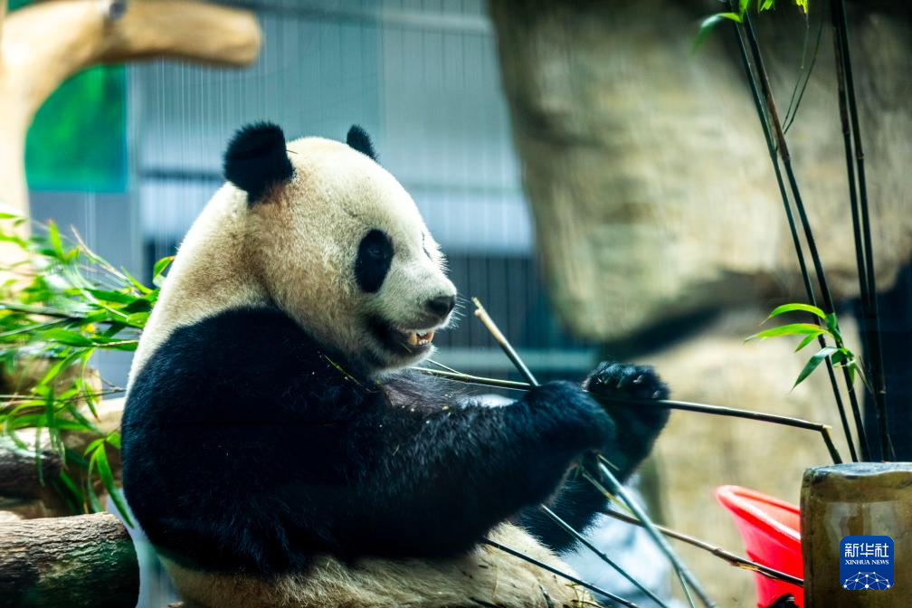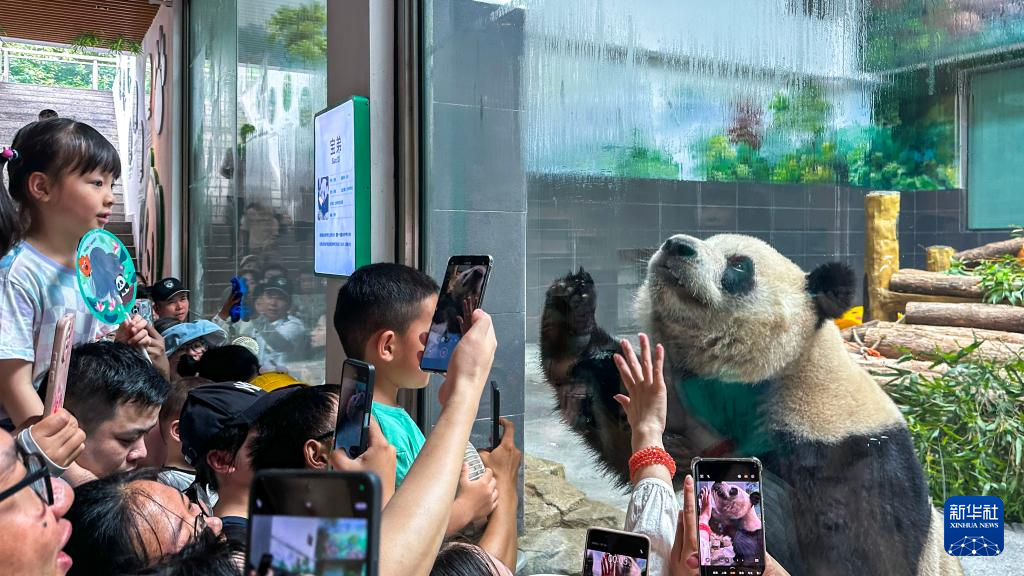 6月15日,归国大熊猫 “宝弟”和“宝妹”在浙江省温州动物园熊猫馆与市民、游客见面。这对双胞胎大熊猫于2019年出生于比利时,深受当地民众喜爱。2024年底,“宝弟”“宝妹”结束旅比生涯回到中国。2025年6月7日晚,双胞胎大熊猫从中国大熊猫保护研究中心抵温,经一周适应,顺利与公众见面。(刘吉利)