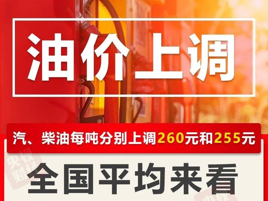 根据近期国际市场油价变化情况,按照现行成品油价格形成机制,自6月17日24时起,国内汽、柴油价格每吨分别上涨260元和255元。折合升价,全国平均来看,92号汽油每升上调0.2元,95号汽油每升上调0.22元,0号柴油每升上调0.22元。