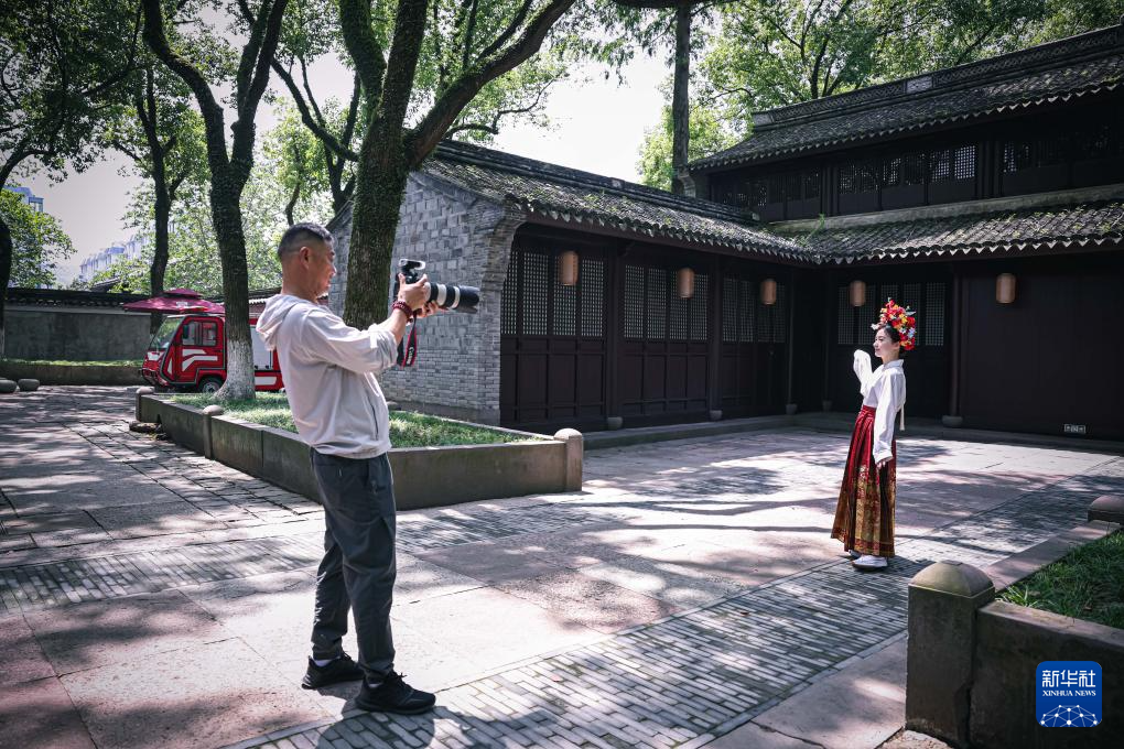 位于浙江省宁波市江北区慈城镇的慈城古县城是宁波地区古代县级规制遗存保存较为完整的古县城,拥有包括古县衙、孔庙等在内的古建筑群。近年来,旅拍等旅游服务在慈城古县城景区发展起来,为游客提供了旅游新体验。(江汉)