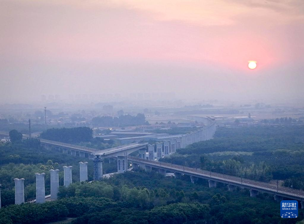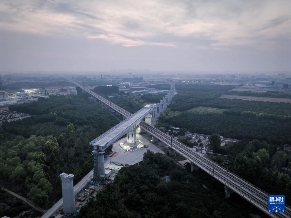 该转体桥位于河北省保定市莲池区,是雄忻高铁重点控制性工程。 雄忻高铁起自雄安站,终到忻州西站,正线全长342公里,是我国“八纵八横”高速铁路网京昆通道的重要组成部分,也是雄安新区“四纵两横”区域高铁网的重要横向通道。(王观生)
