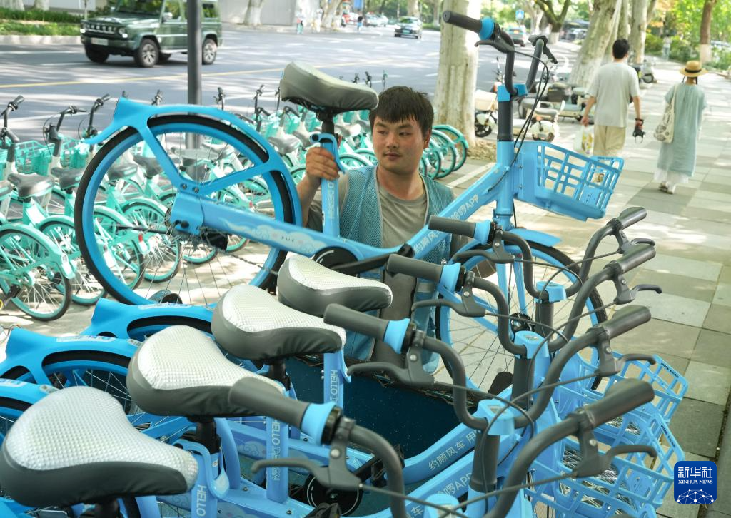 近日,杭州市各共享单车企业开始集中为共享单车安装特殊材质制成的清凉坐垫,提升绿色出行体验。据杭州市轨道交通运行和公用事业保障中心介绍,杭州将在7月上旬前完成6万辆共享单车的清凉坐垫安装工作。(翁忻旸)