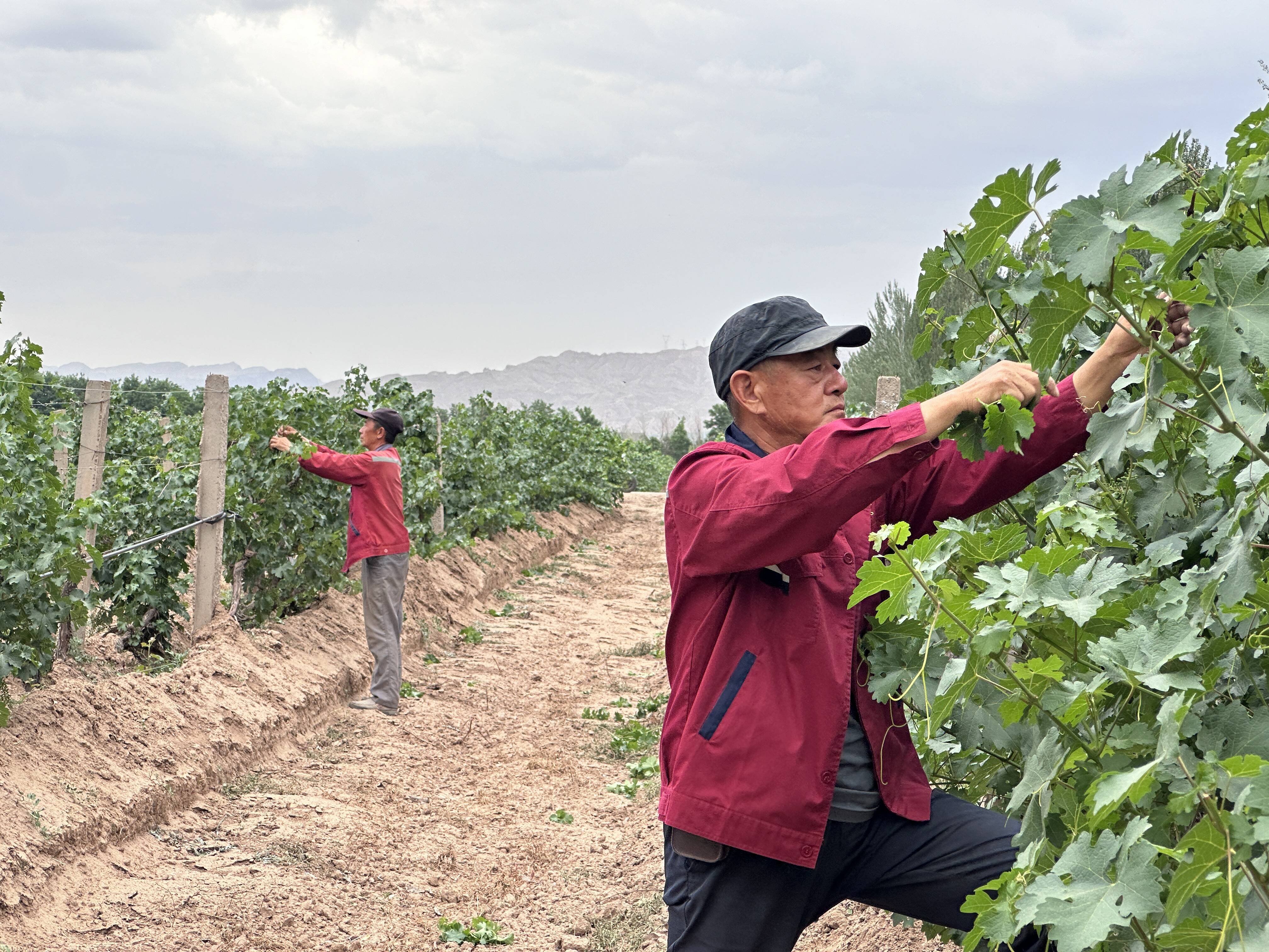 六月骄阳似火,在海勃湾区宇辰水果种植场的葡萄园里,浓密的绿叶下已缀满串串青果。此时正是露地葡萄管护的关键时期,种植户们抢抓农时,穿梭于藤架之间,紧张有序地进行着掐枝、疏果等作业,为今年葡萄丰产丰收打基础。