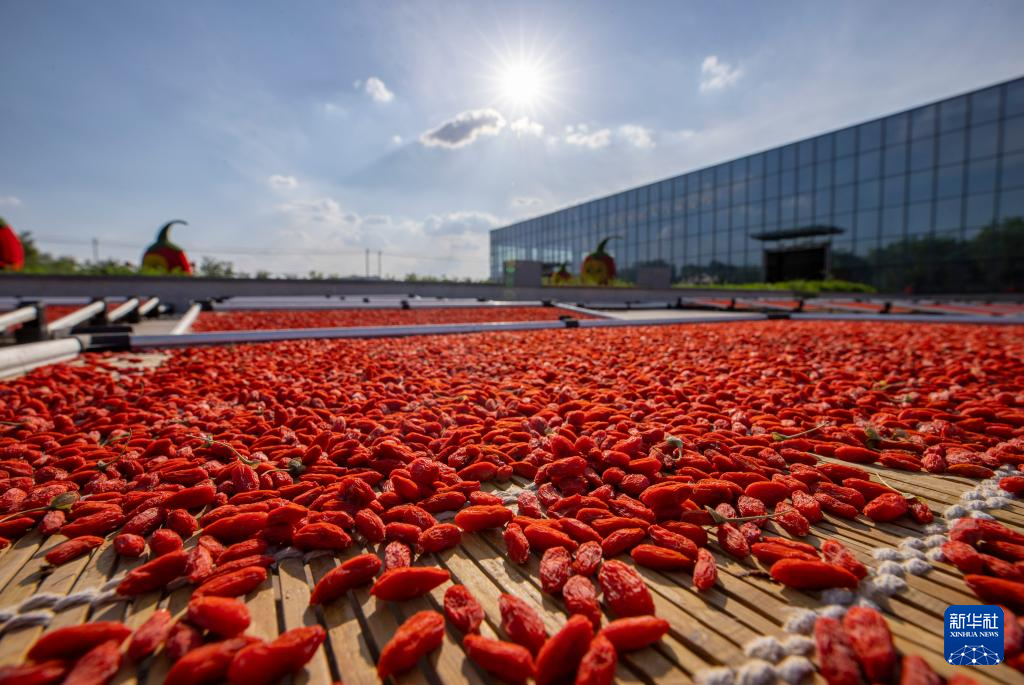 近年来,宁夏吴忠市同心县河西镇依托当地三条引黄干渠灌溉网络,流转土地发展枸杞种植,通过龙头企业带动的方式发展枸杞深加工,除了传统干果枸杞之外,研发出枸杞原浆、枸杞果酱、枸杞粉等产品,深受国内外消费者喜爱。目前,同心县河西镇枸杞种植面积约1.1万亩,枸杞产业年产值超2.7亿元。(杨植森)