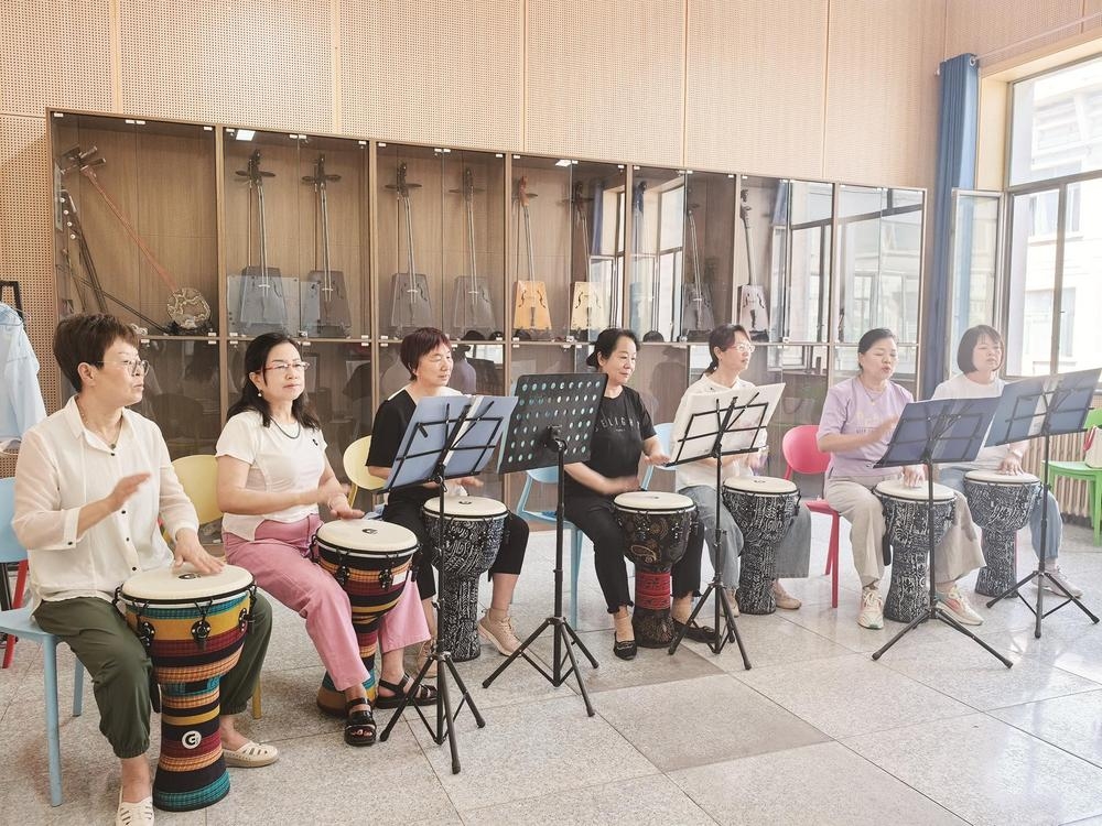 近年来,乌达区文化馆开设了丰富多彩的文化课程,文艺爱好者纷纷报名参加。图为文艺爱好者演奏乐器。
