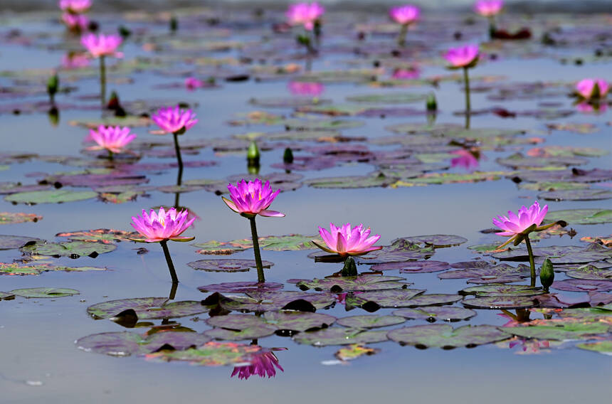 近日,江西省宜春市万载县康乐街道里泉村睡莲基地睡莲花开。近年来,万载县以“花”为媒,大力发展“花”经济,农民靠“花”经济鼓起钱袋子。(罗娜 邓龙华)