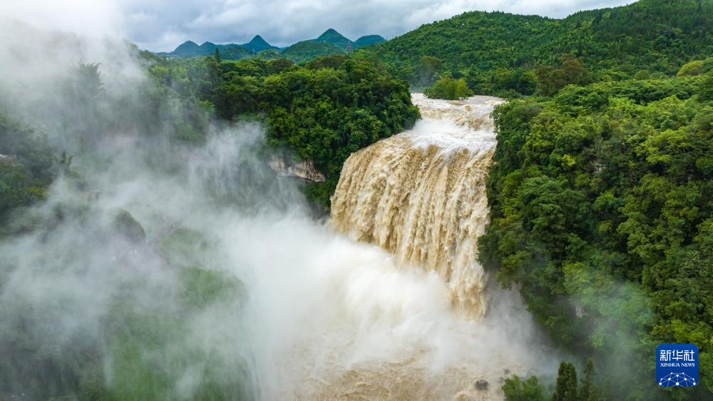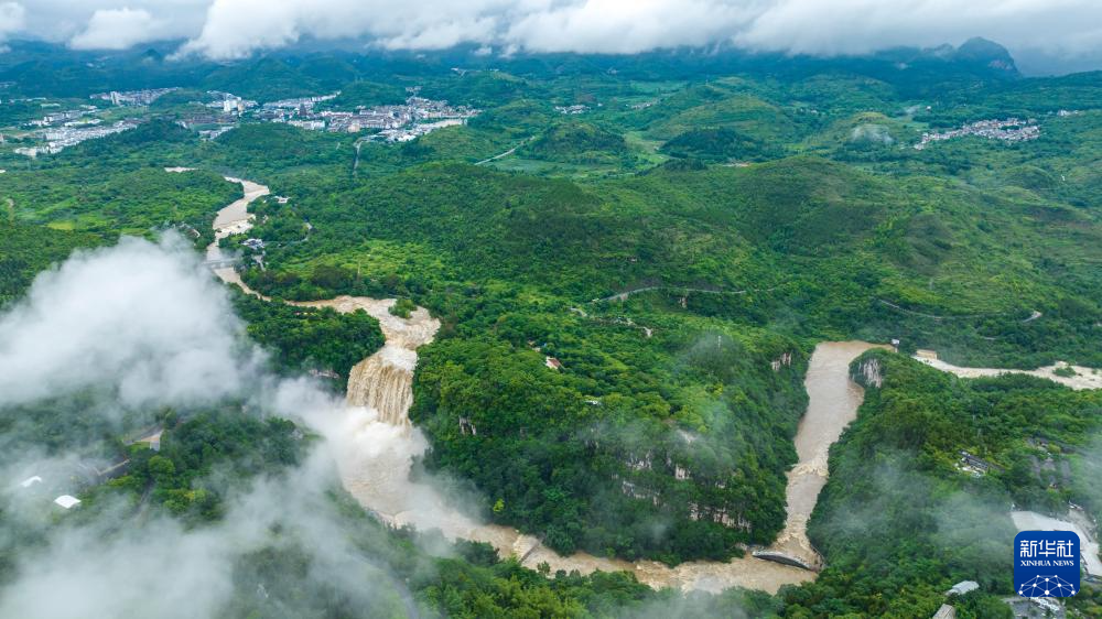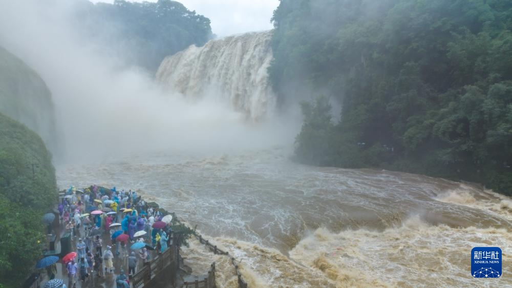 受持续降雨及上游来水影响,位于贵州省安顺市的黄果树瀑布迎来2025年入汛最大水量。据贵州省安顺市水文水资源局实测数据显示,6月26日黄果树瀑布流量最高时达每秒528立方米。(陈熙)
