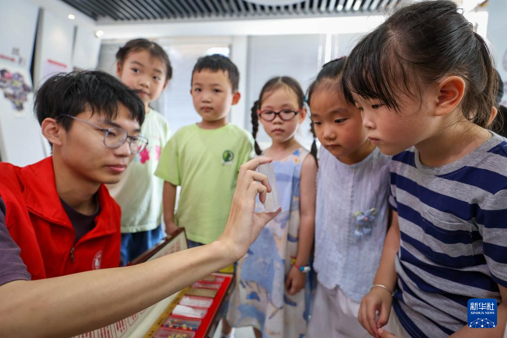 6月26日,在浙江省湖州市德清县雷甸镇中兴社区,志愿者通过毒品仿真模型介绍伪装的毒品。(姚海翔)