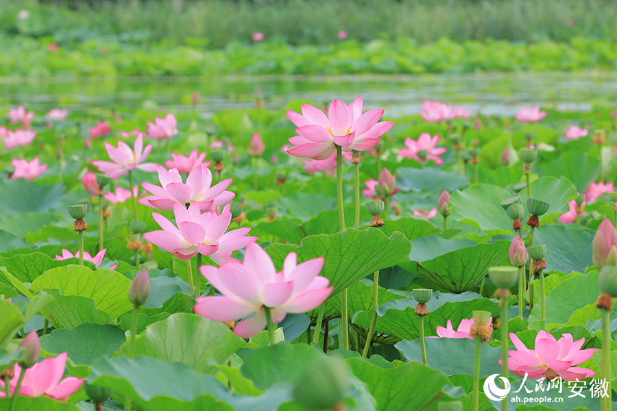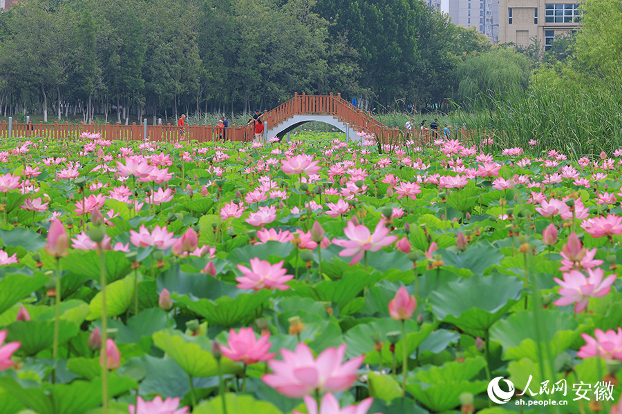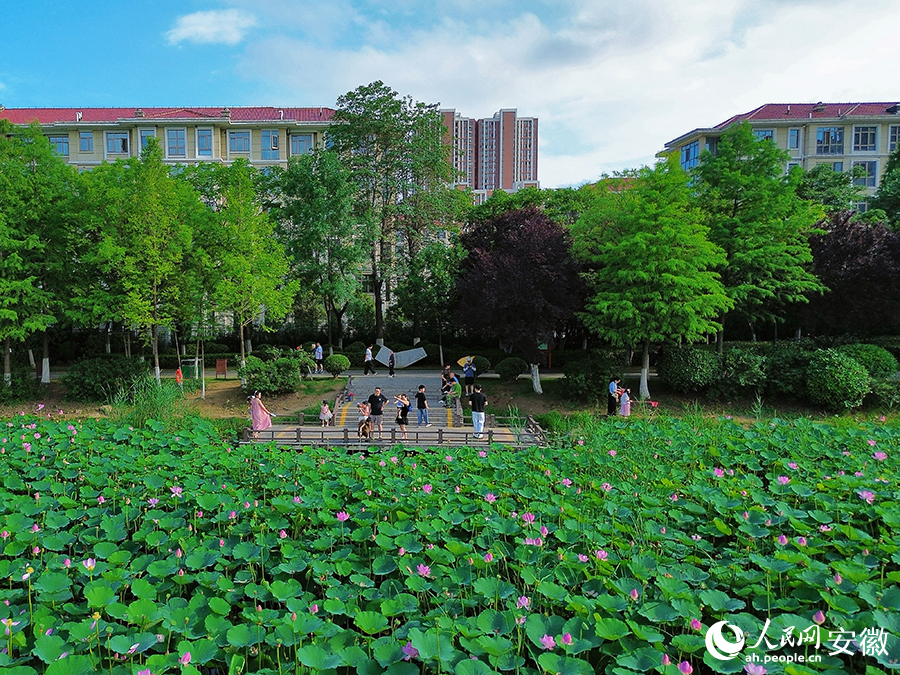 夏至时节的安徽淮北,荷风送爽,桓谭公园与南湖湿地公园的荷塘已披上盛装。粉荷亭亭,翠叶翻浪,游人如织,共同绘就了一幅“半城绿意半城水”的生态画卷。(王晓飞 吕欢欢)