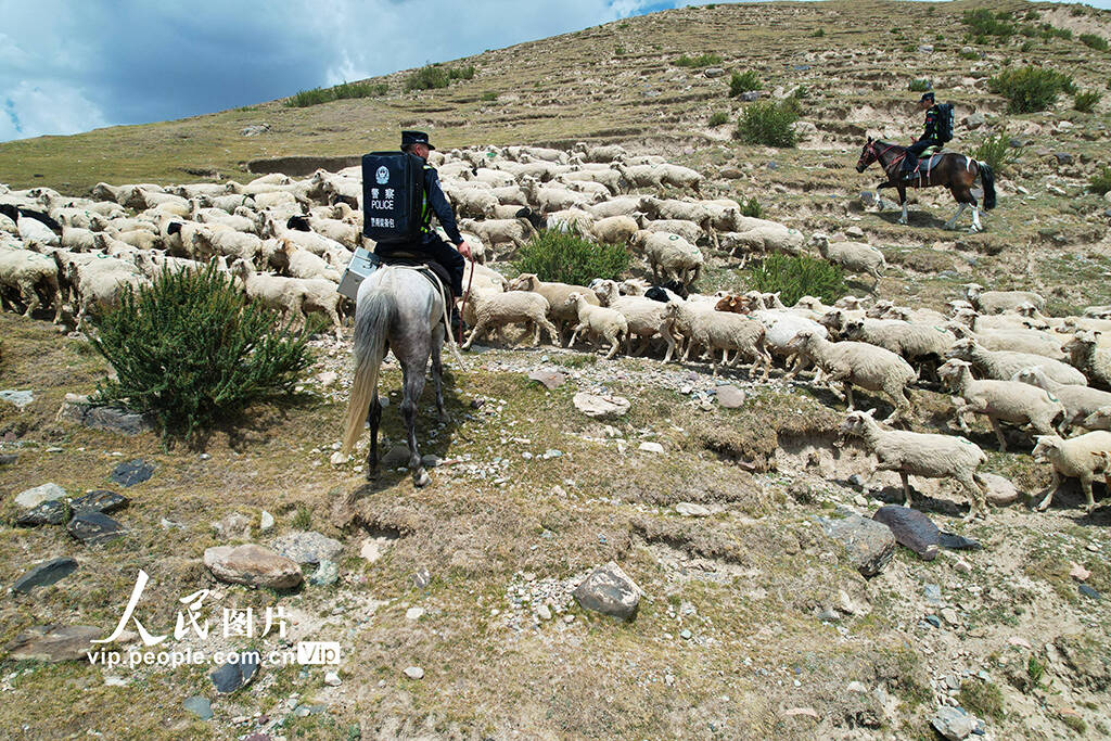 民警现场排查隐患、指挥交通、调解纠纷,同时普及转场安全知识,提醒穿戴反光背心、加强牲畜看管,全力保障牧民及牲畜顺利抵达夏牧场。(王举南)