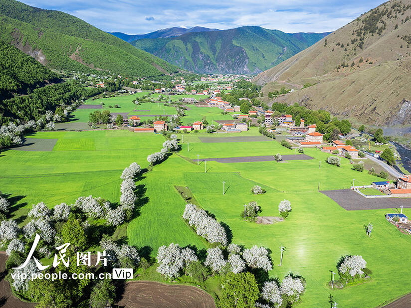 被多彩稻田包围的村庄。人民网记者 陈博摄