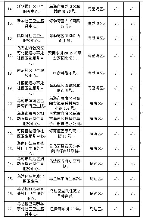 乌海市开通门诊统筹结算服务的定点医疗机构名单
