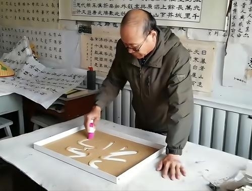 为了提升自己的书法技艺,张永华前往北京学习书法。在名师的指导下,他的毛笔书法水平得到了极大提升,对书法艺术的理解也更加深刻。他说:“在北京学习期间,我就想把自己学到的书法技艺融入沙书中,使沙书也能达到入帖的效果,这样才能在传承传统沙书技艺的基础上,赋予其更多的艺术内涵。”